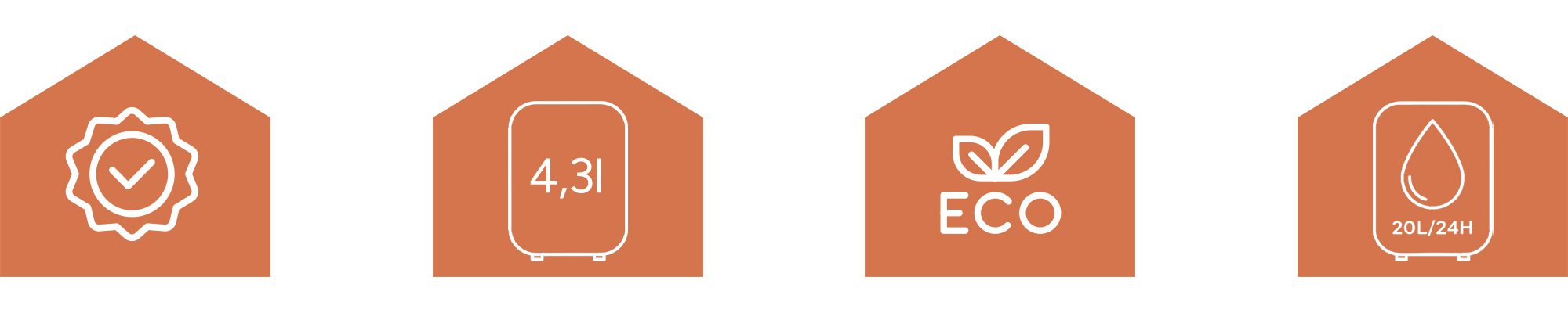 - Stort 4,3 liters vattenbehållare – mindre frekvent tömning.
