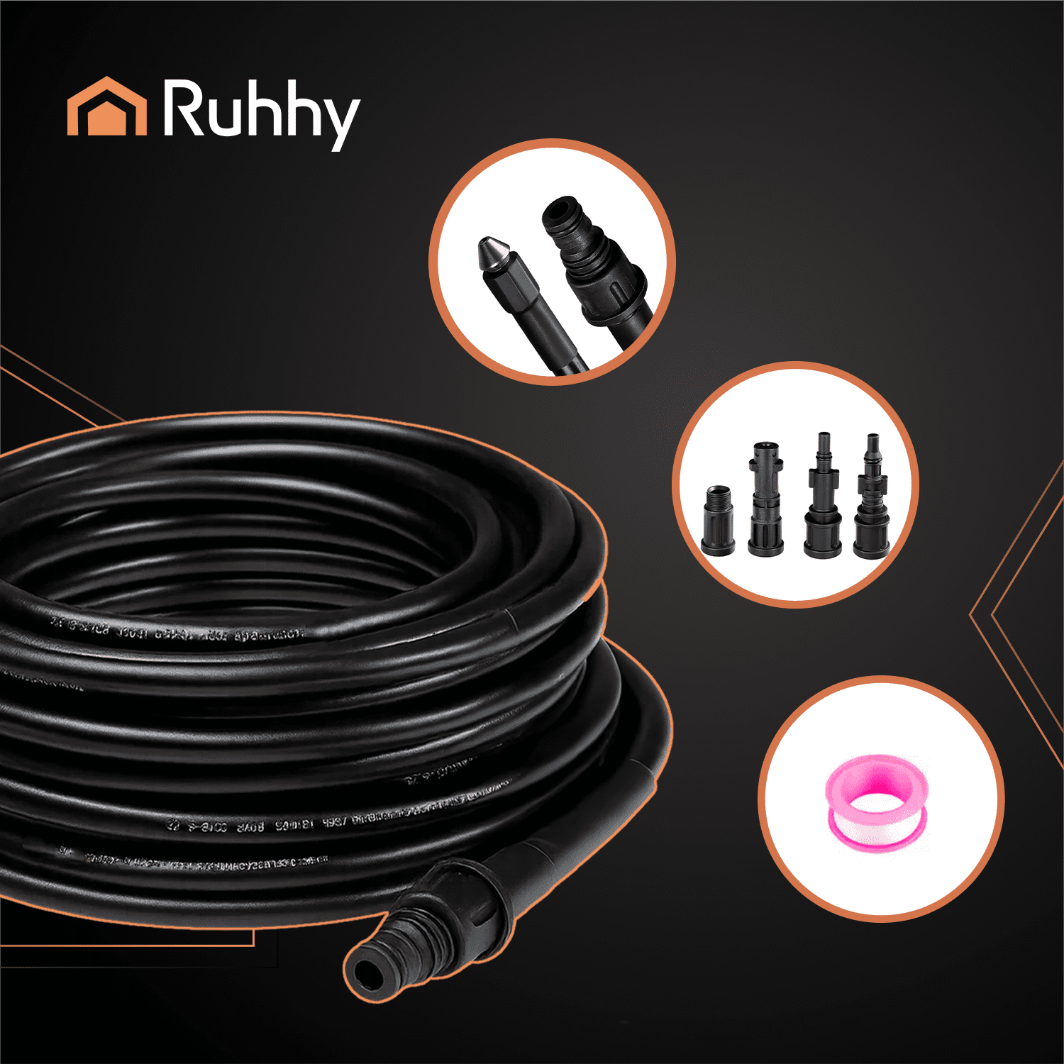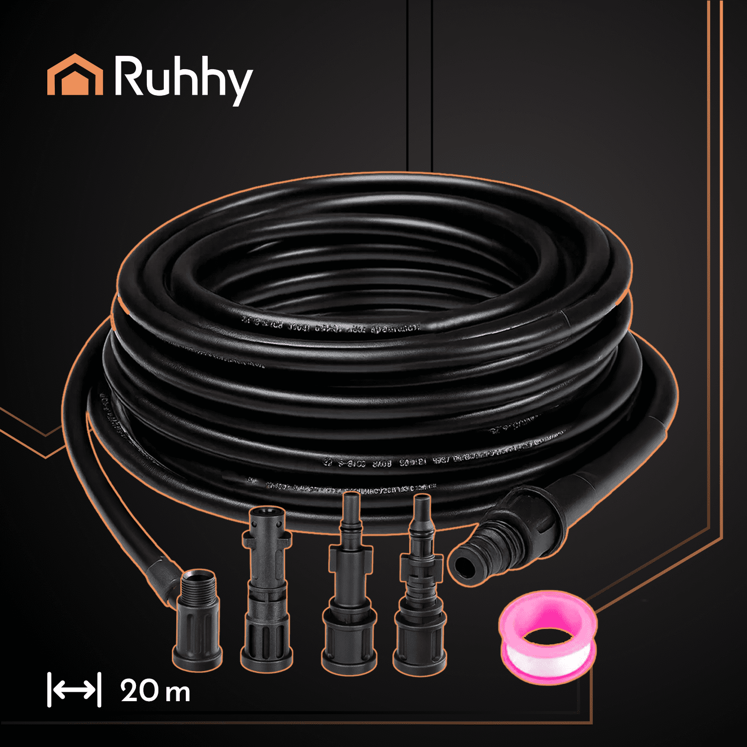 ✔ 20 meter flexibel högtrycksslang – effektiv för att rensa blockeringar i rör samt ta bort smuts från stenplattor och trädgårdsredskap