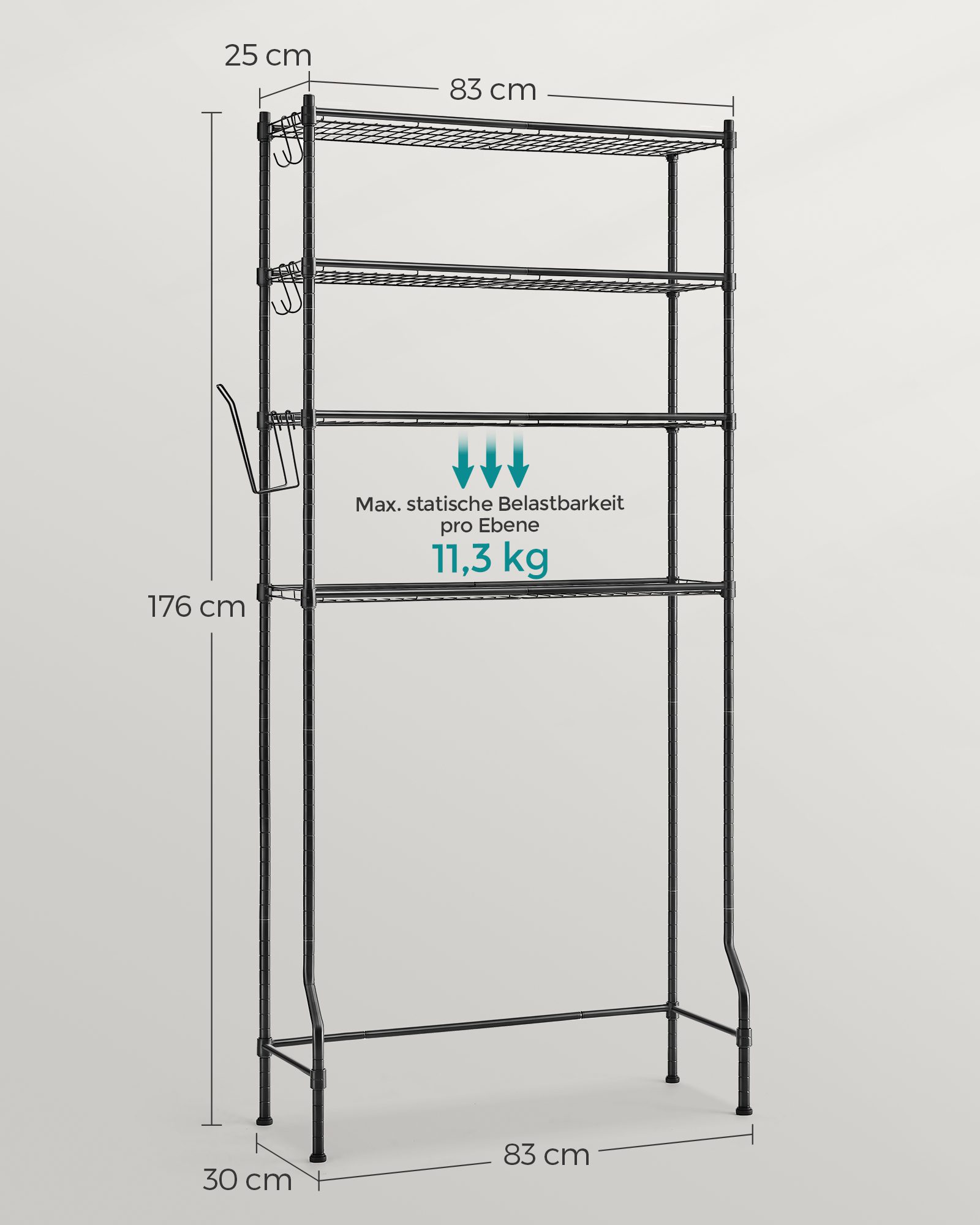 4 hyllor som ger gott om plats för toalettartiklar och tvätttillbehör för ett mer prydligt badrum