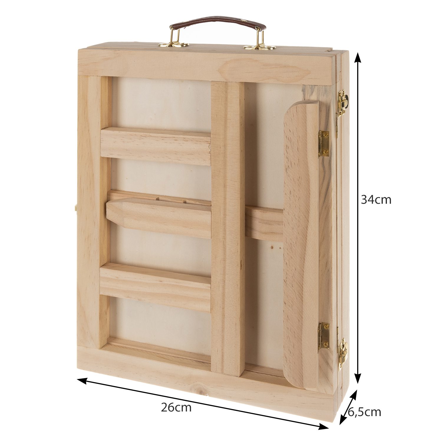 ✔ Den smarta 3-i-1-designen kombinerar en praktisk träresväska, ett vikbart staffli och hela 45 konsttillbehör – perfekt för både nybörjare och erfarna konstnärer.