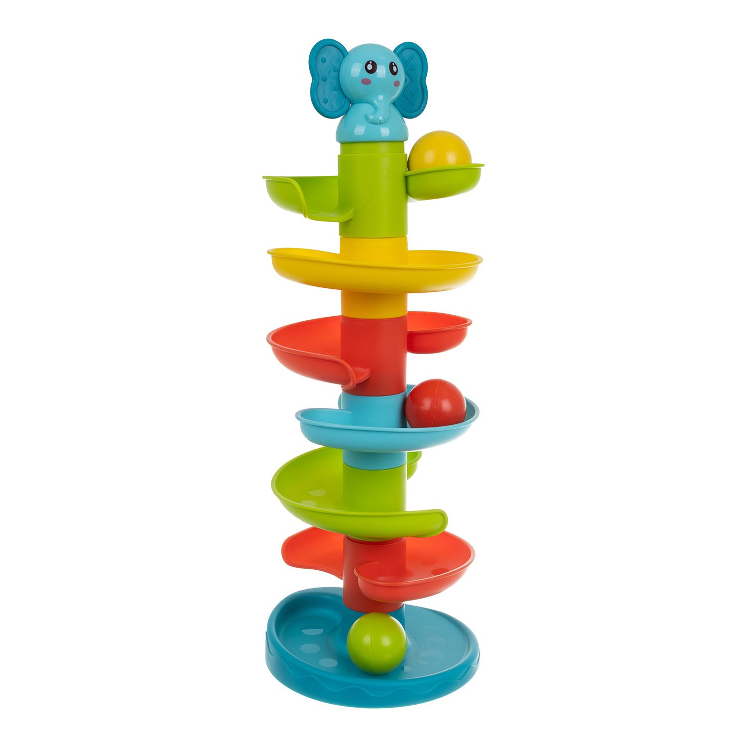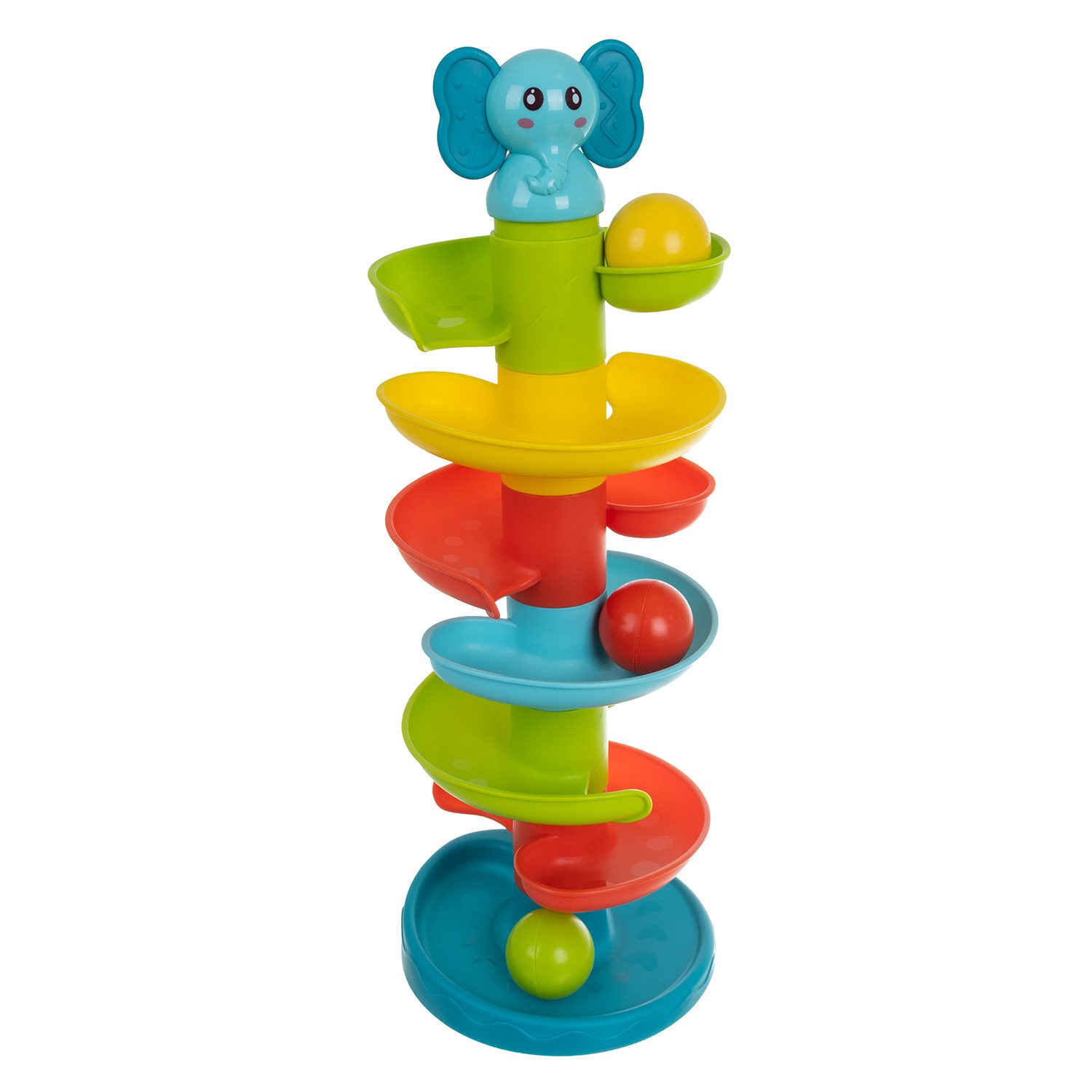 • Kulbana med spiralrutschkana där färgglada bollar rullar ner och bjuder på massor av lekglädje