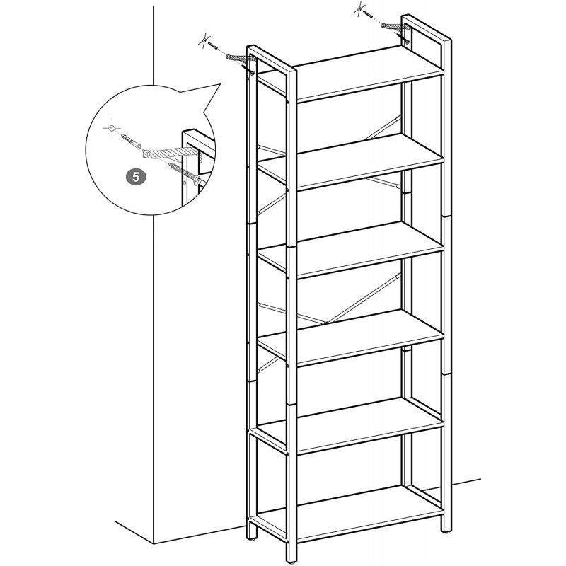 Bokhylla med 6 nivåer som ger gott om plats för böcker, prydnader, växter och andra föremål