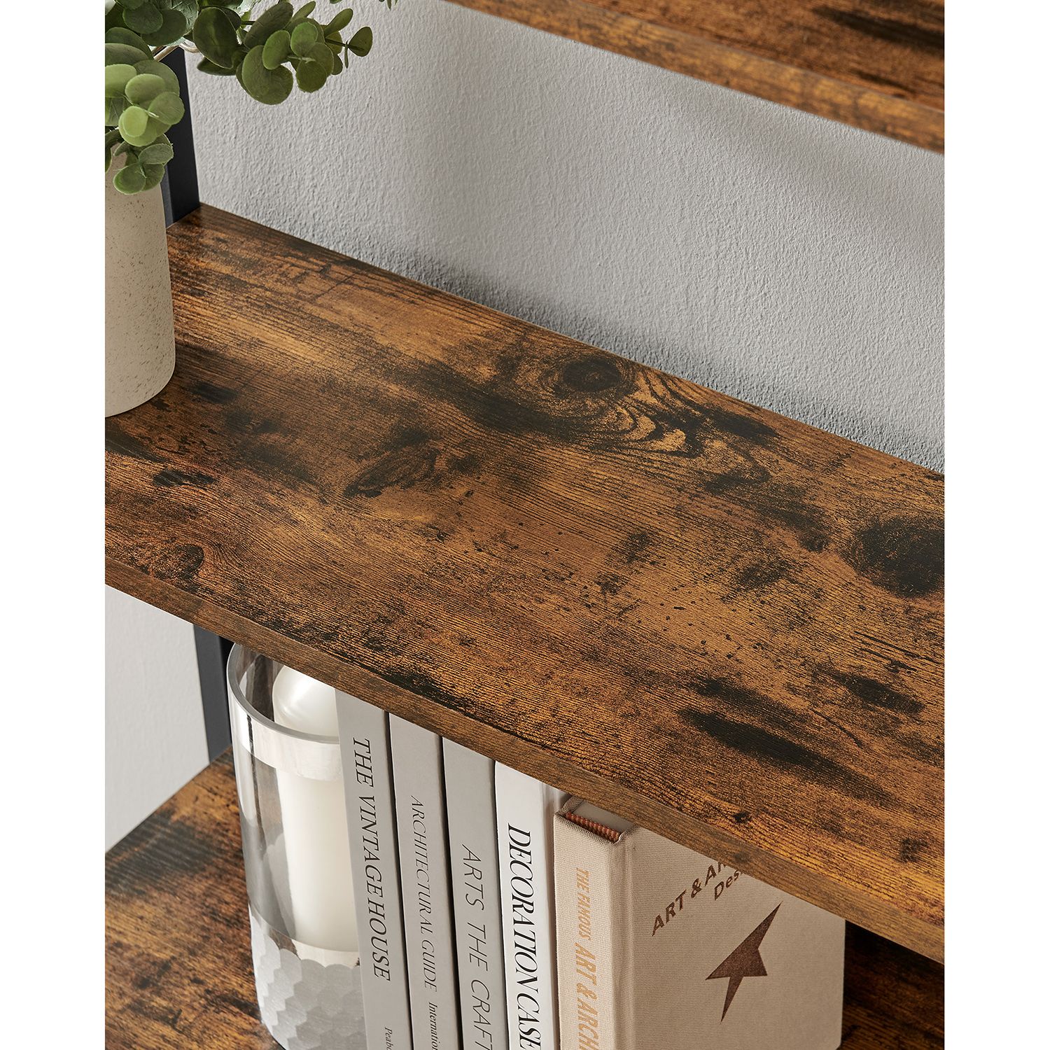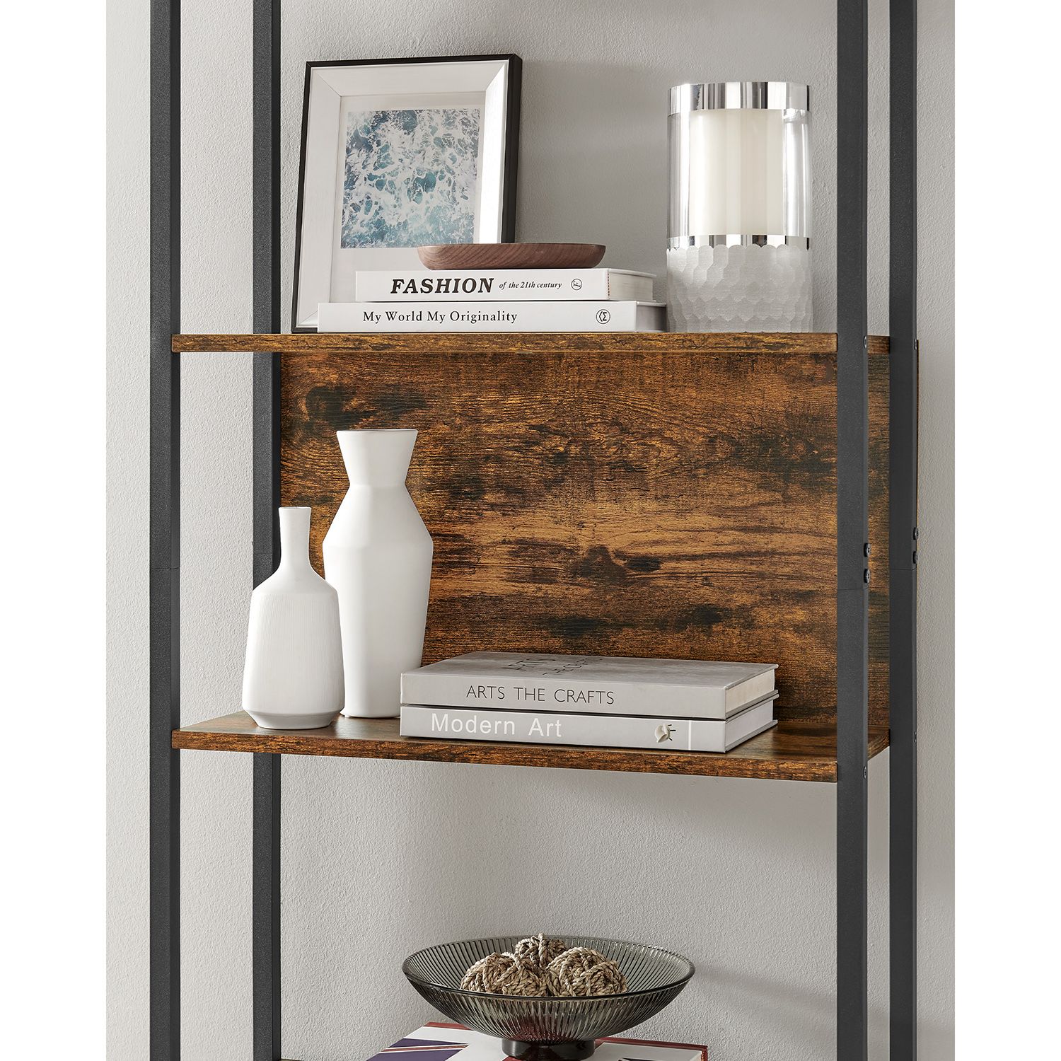 Industriell look med mattsvart stålram och rustika hyllplan i vintage brun som blir en snygg blickfångare