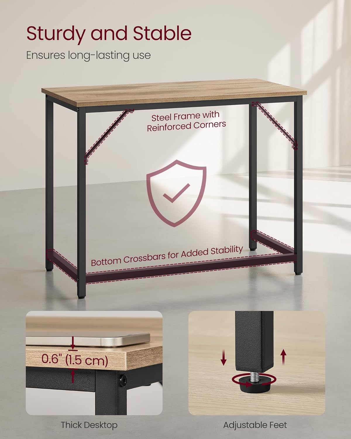 Tack vare den genomtänkta konstruktionen får du ett skrivbord som fungerar lika bra för arbete, studier som enklare gaming. Ett praktiskt och prisvärt skrivbord för vardagens behov.