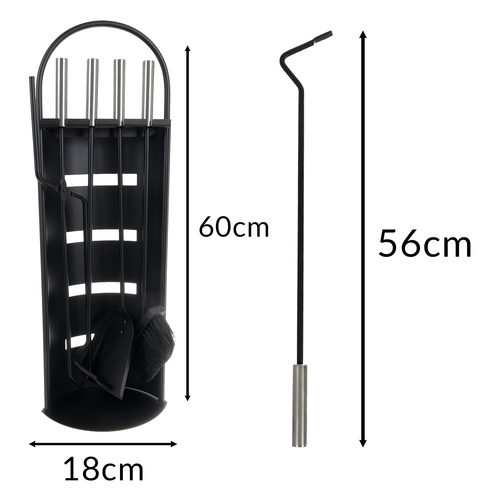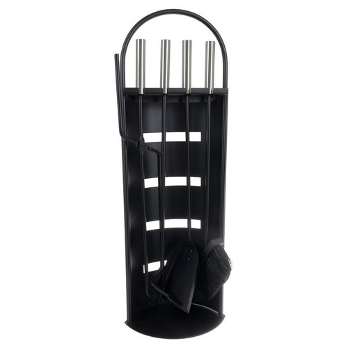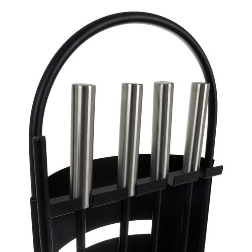 Detta eleganta och robusta 5-i-1 set innehåller alla nödvändiga verktyg för att underhålla din eldstad eller kamin: tång, skyffel, borste och eldgaffel. Alla delar hängs smidigt på det medföljande stället, vilket gör det både praktiskt och stilfullt.