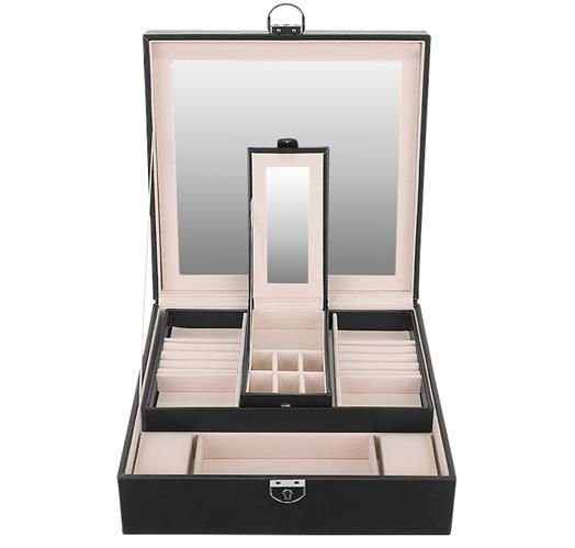 Stor kapacitet och smart uppdelning – smyckeskrinet består av ett avtagbart lock med: