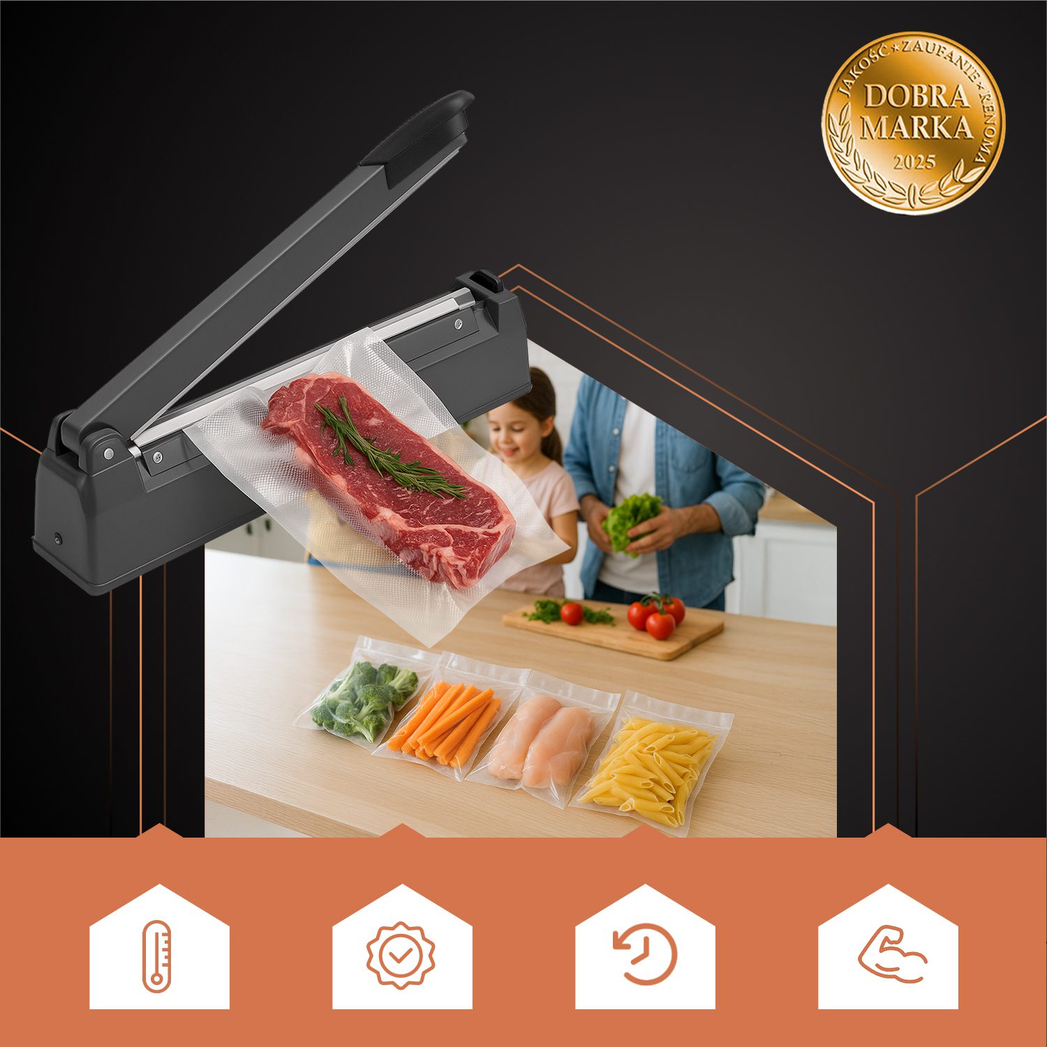 Ingår: folieförseglare, extra värmeelektrod, bruksanvisning, brun fraktlåda