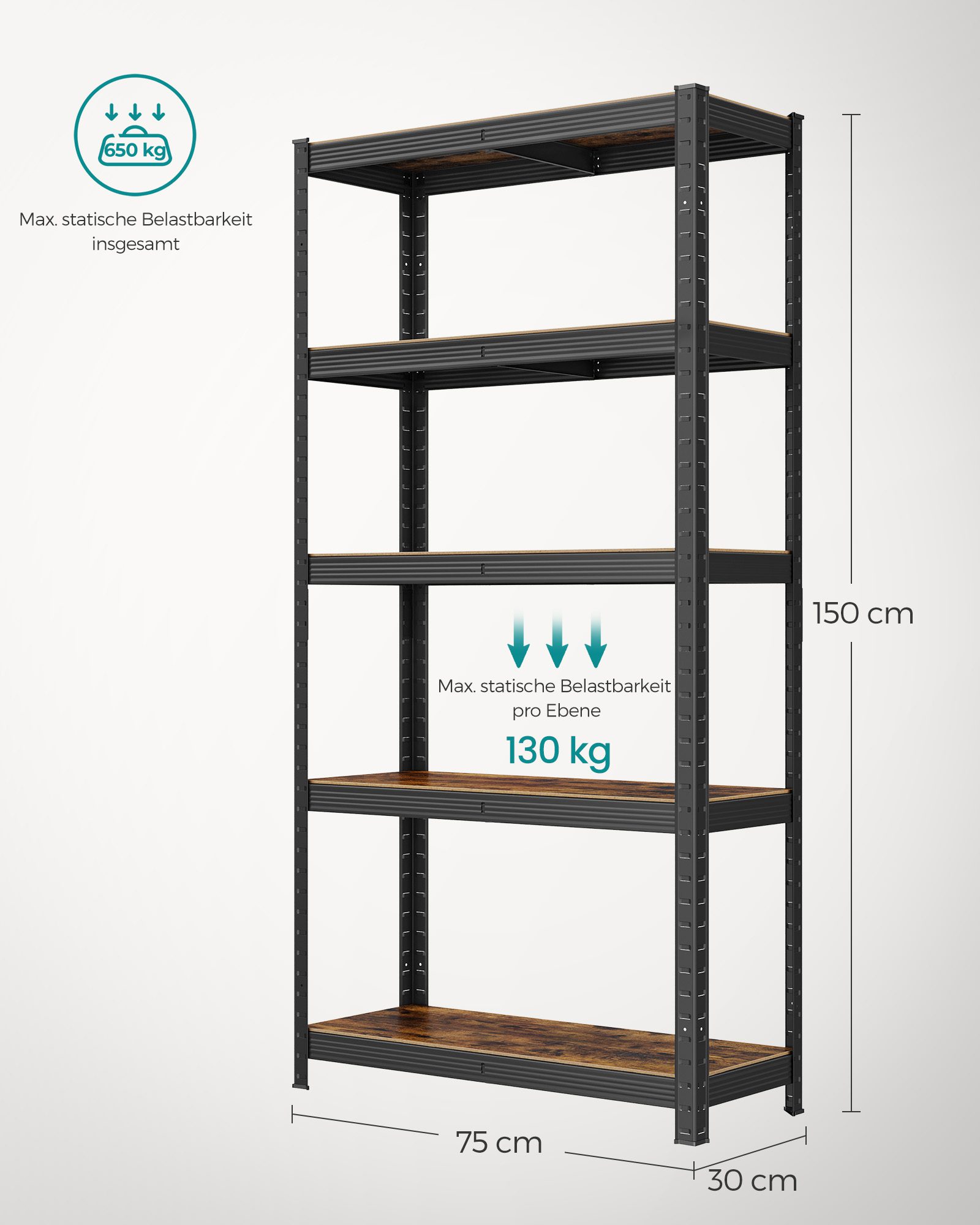 Kraftig förvaringshylla som klarar upp till 130 kg statisk belastning per hyllplan och passar för allt från växter till träningsutrustning och köksapparater.