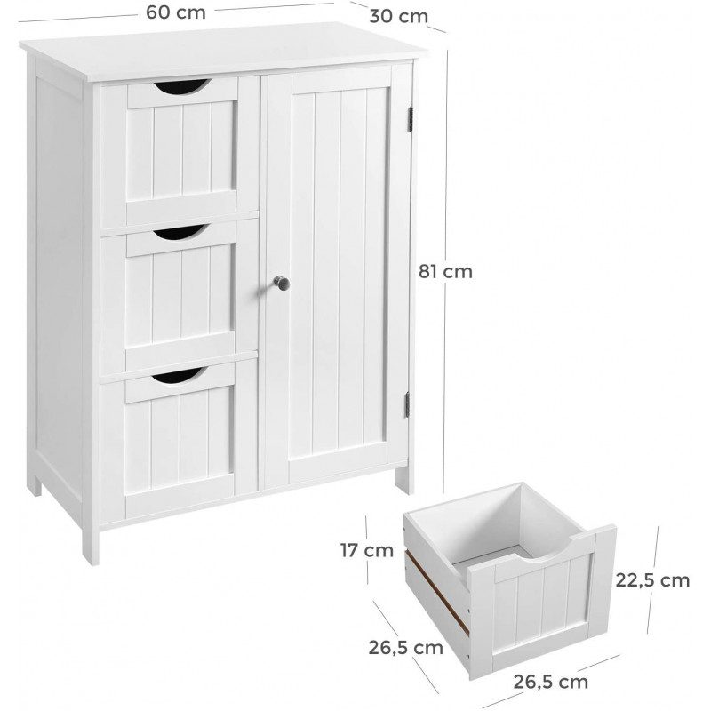 Kompakt storlek på 60 × 30 × 81 cm som passar bra i badrum, hall, sovrum eller tvättstuga