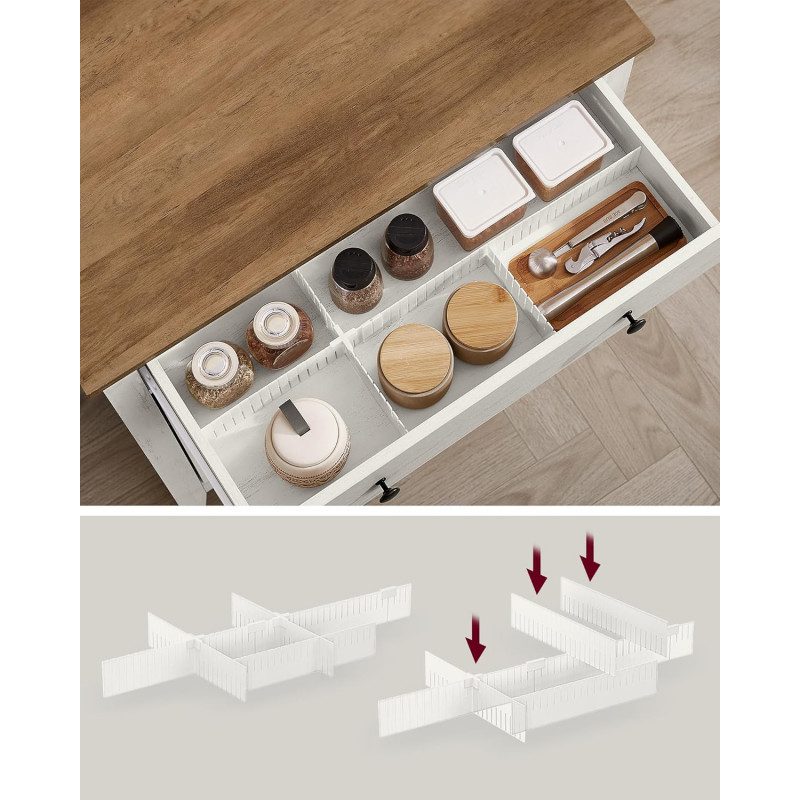 Flexibel layout med avdelare i lådan samt justerbar hylla i underskåpet med 5 höjdnivåer för föremål i olika storlekar