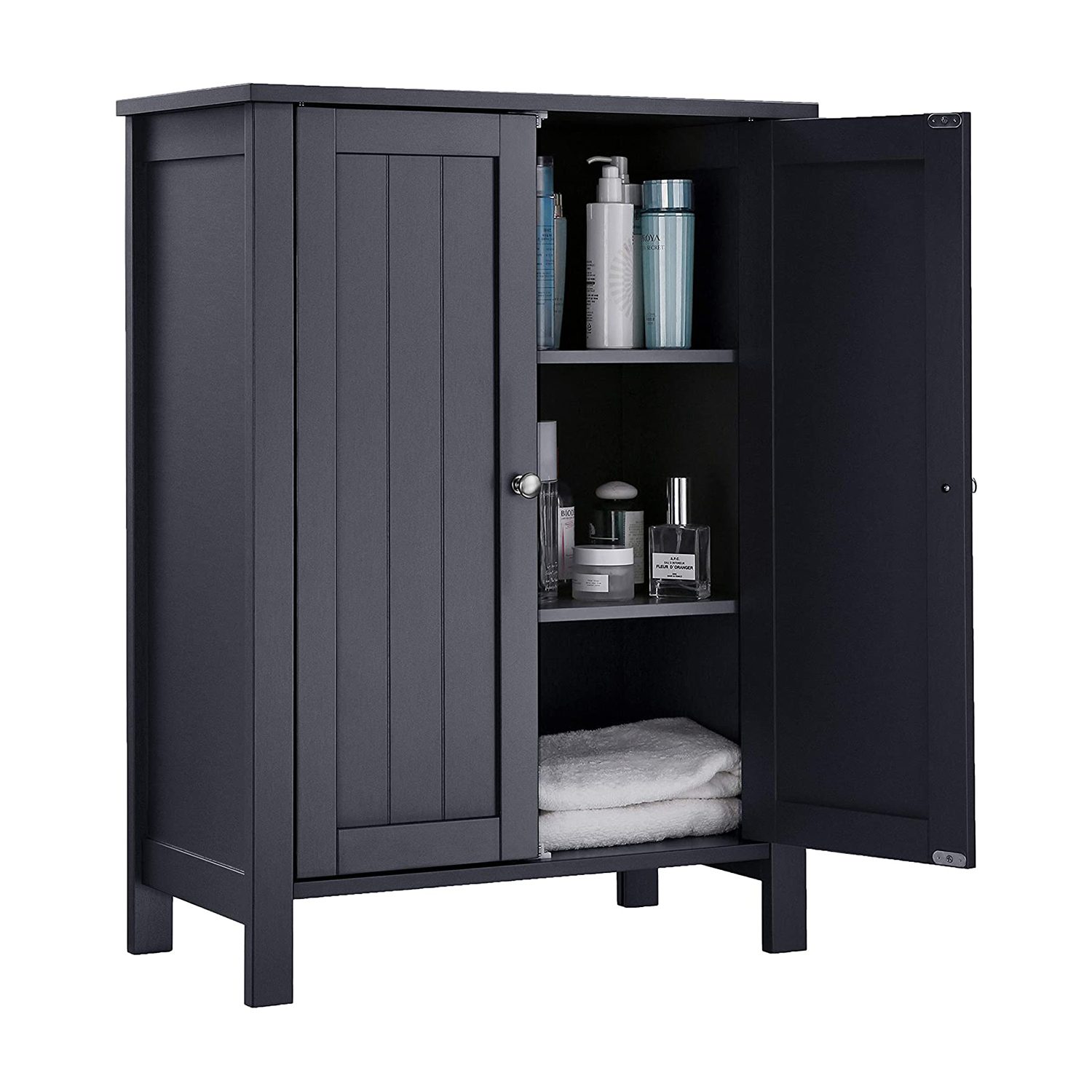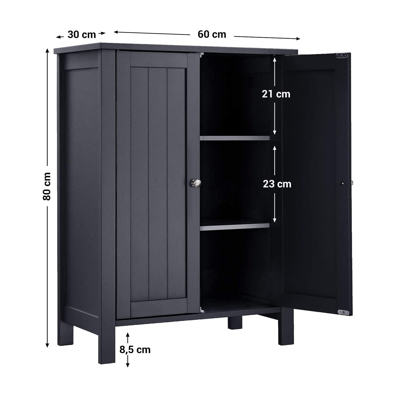 Grått förvaringsskåp med 2 dörrar och 2 justerbara hyllor som passar i badrum, kök, hall och vardagsrum