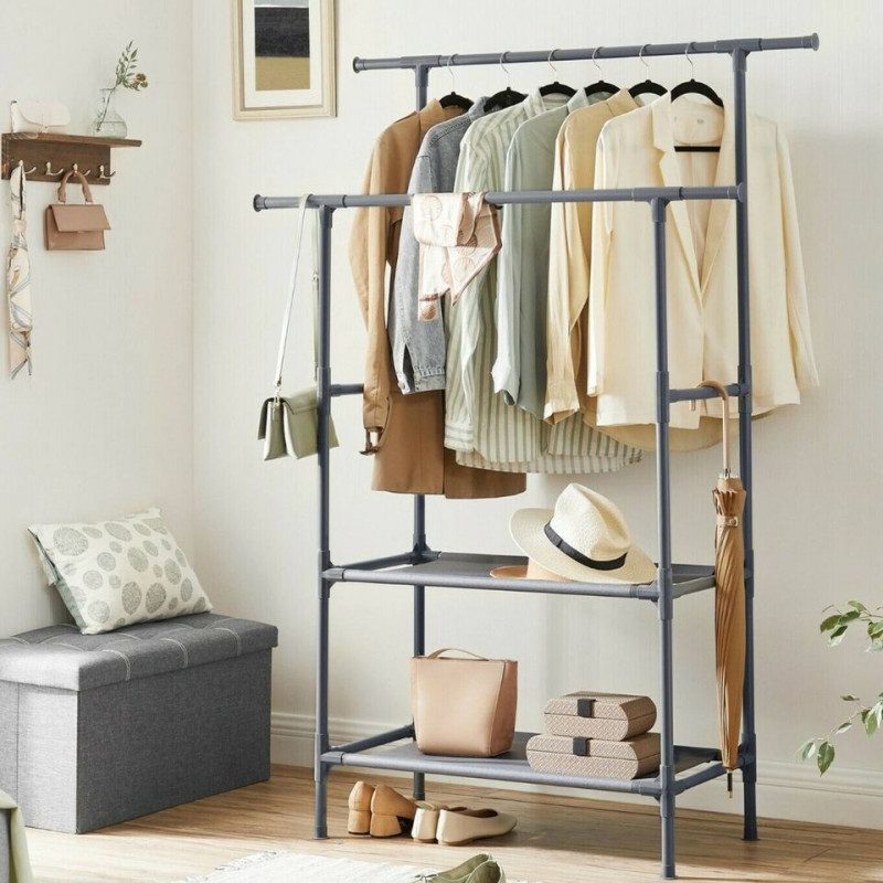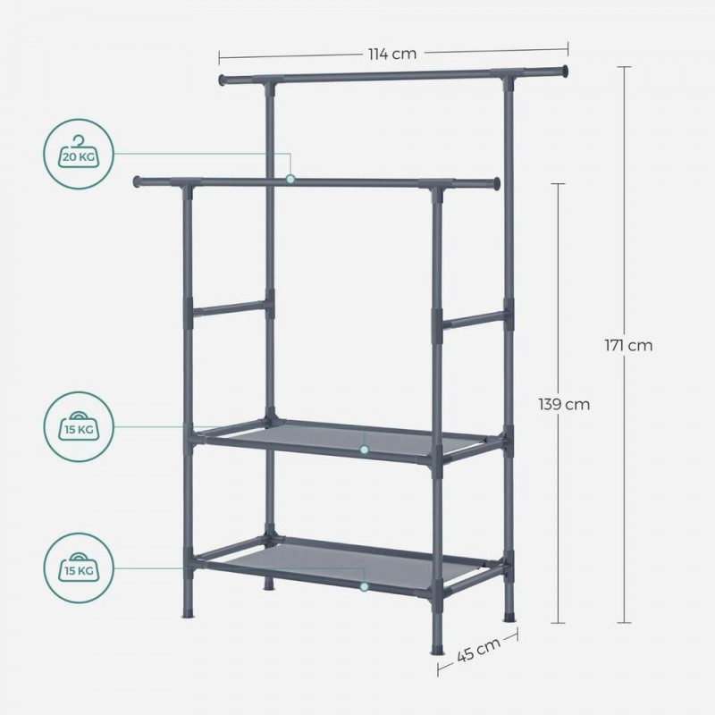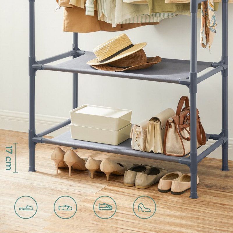 ✔ Hög stabilitet med två klädstänger för kläder samt två nedre hyllor för skor och väskor, med en total maxbelastning på upp till 80 kg