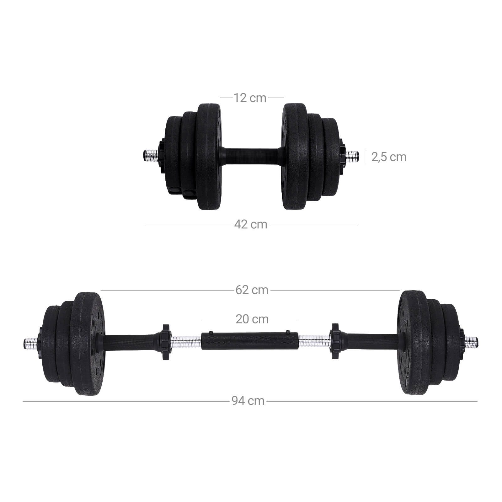 Extra 20 cm kopplingsstång ingår, så du kan omvandla setet till en skivstång och få fler träningsmöjligheter.