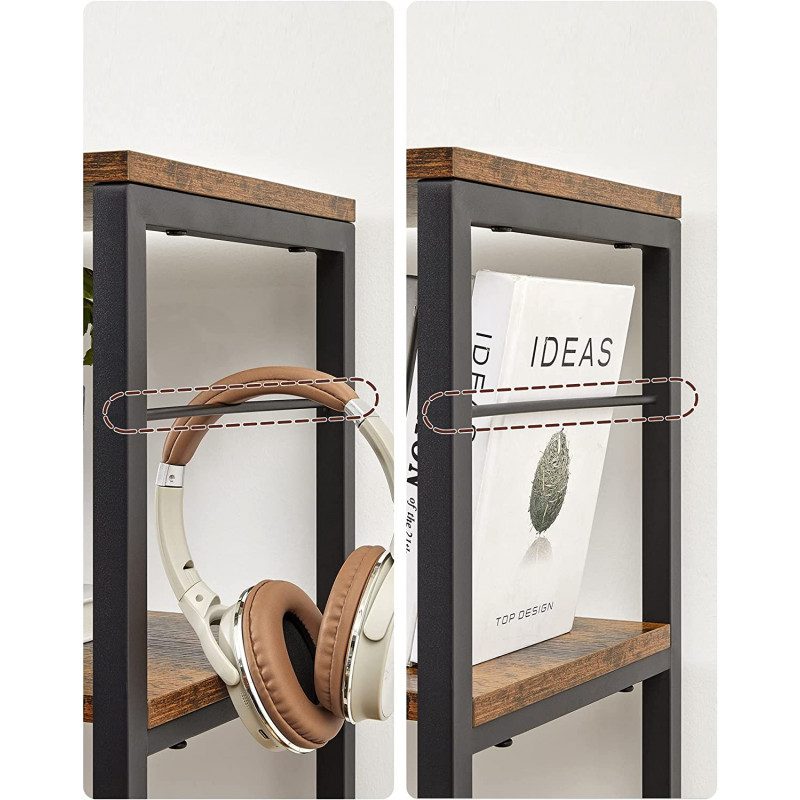 Horisontella sidostänger på varje nivå som hjälper till att hålla saker på plats och förhindrar att de glider av
