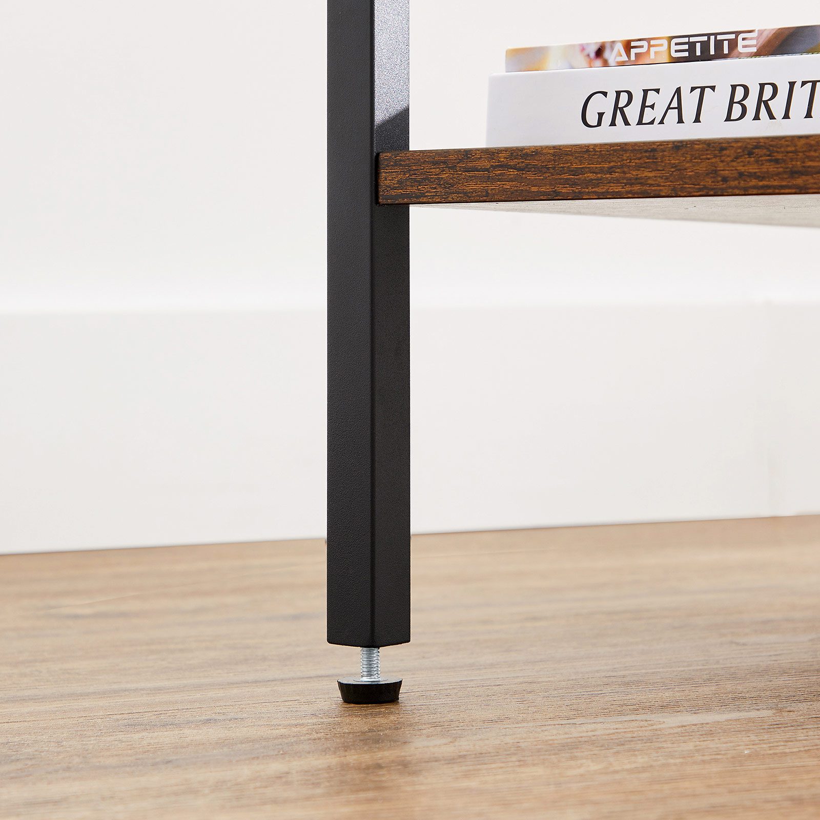Robust sidobord/sängbord i industriell stil, tillverkat av stål och spånskiva för lång hållbarhet och en rustik känsla.