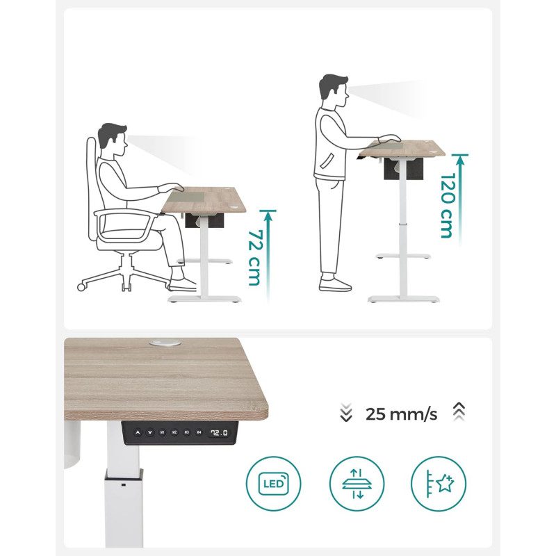 Elektriskt höjdjusterbart skrivbord med justerbar höjd mellan 72 och 120 cm