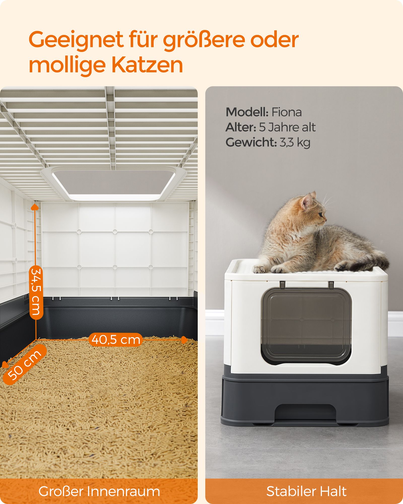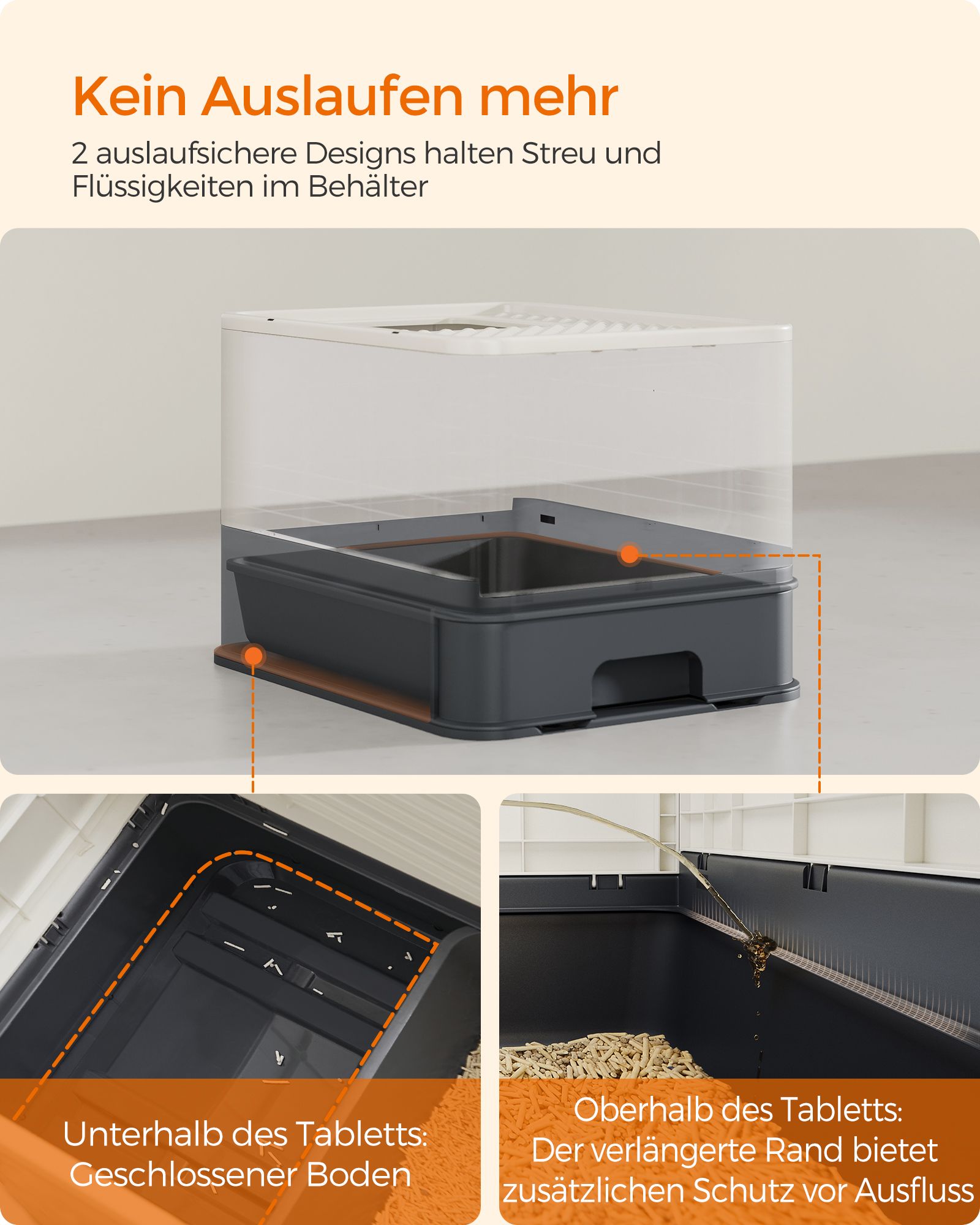 Höga väggar och spillsäker konstruktion som minskar att kattsand sprids på golvet – perfekt för “grävare”