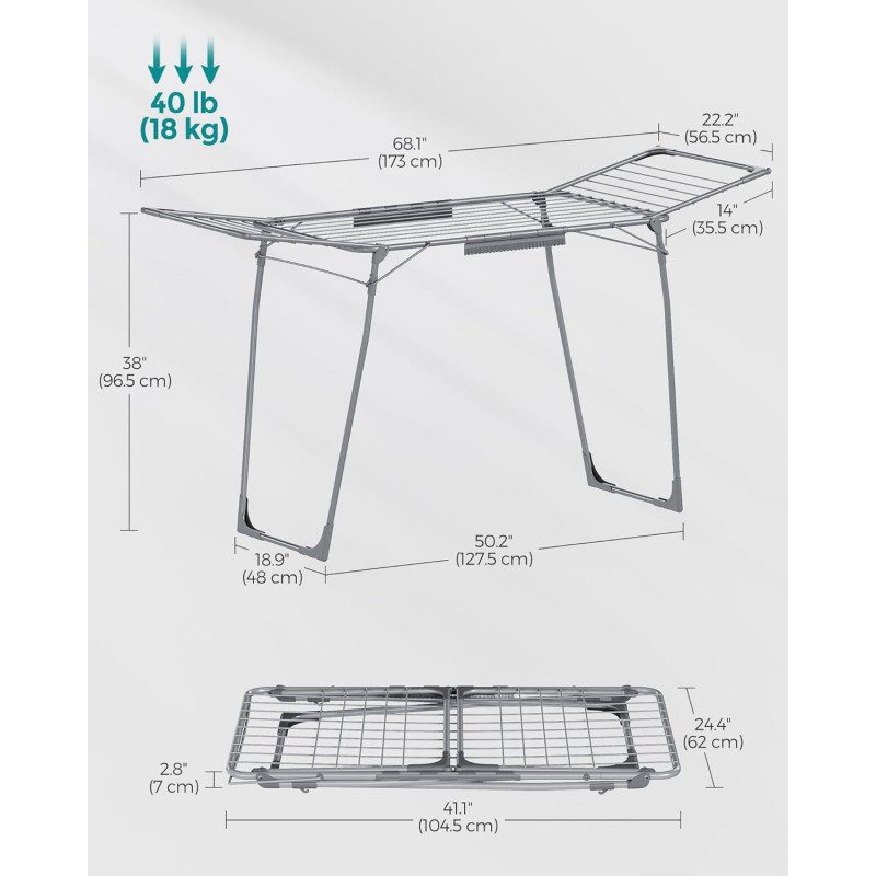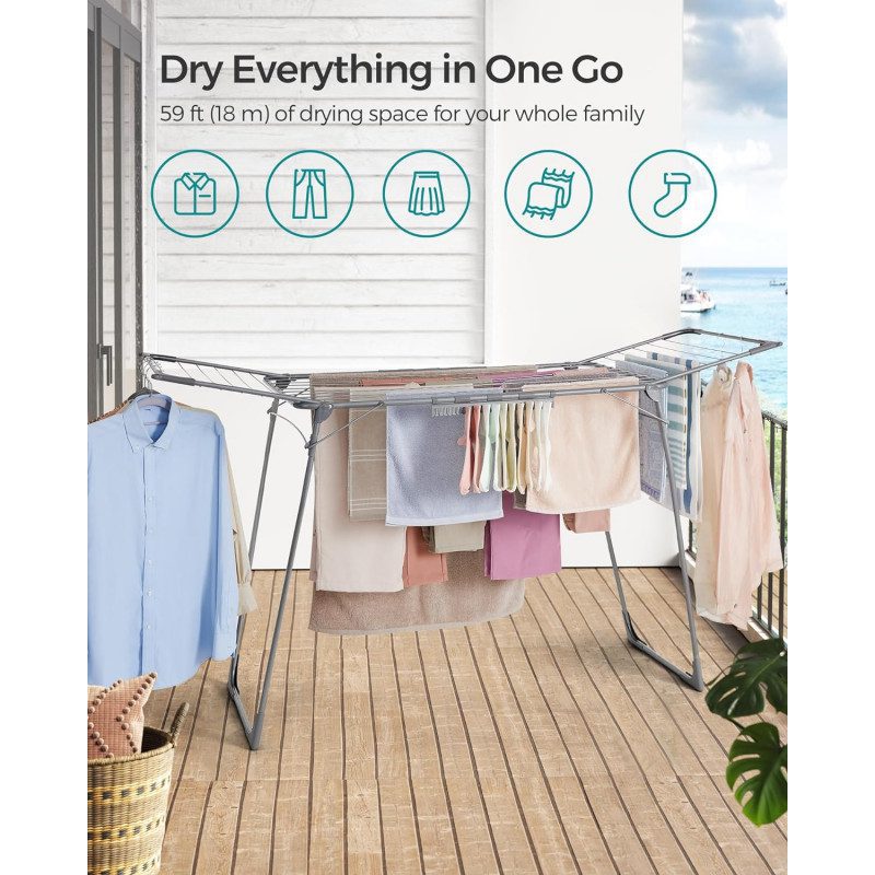 Hopfällbar Torkställning – Grå, 173 × 56,5 × 96,5 cm