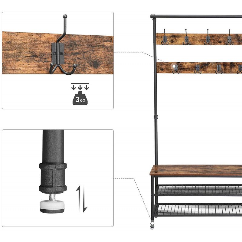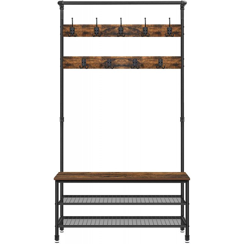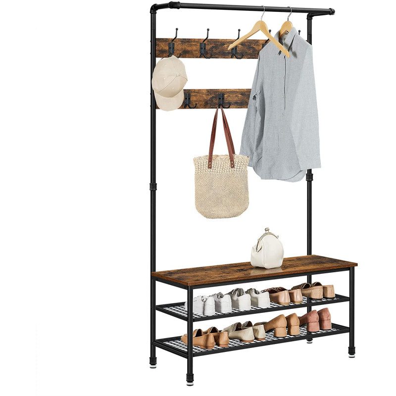Rustik hallmöbel i industridesign med klädställning, sittbänk och två skohyllor – en komplett och praktisk hallösning