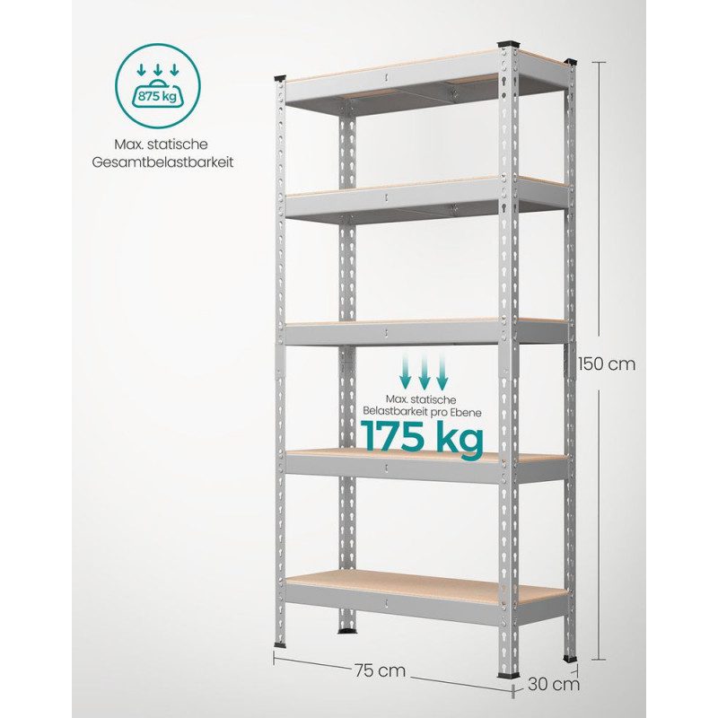 ✔ Varje hyllplan klarar upp till 175 kg och förstärkta tvärstänger ger extra stabilitet.