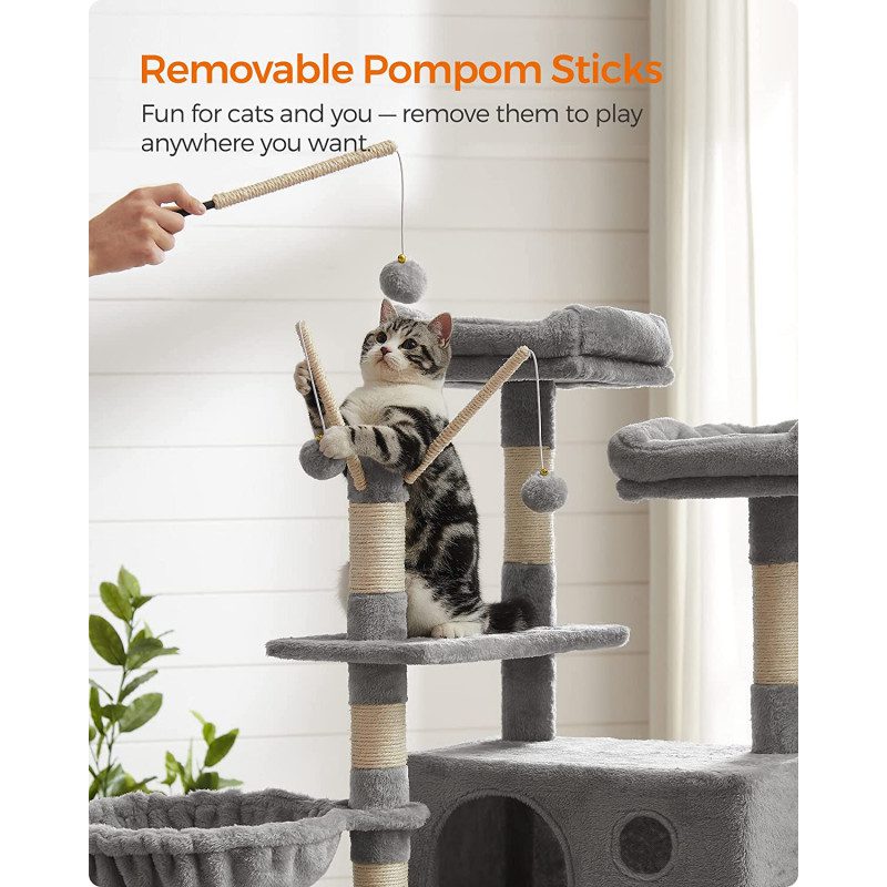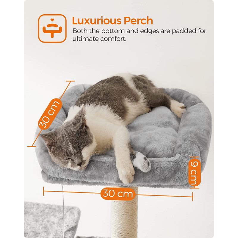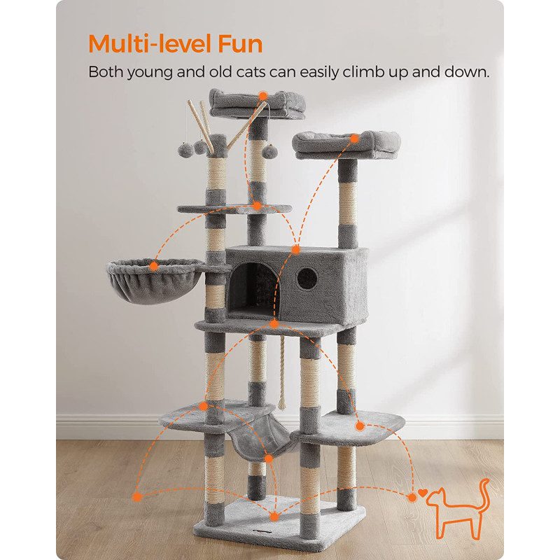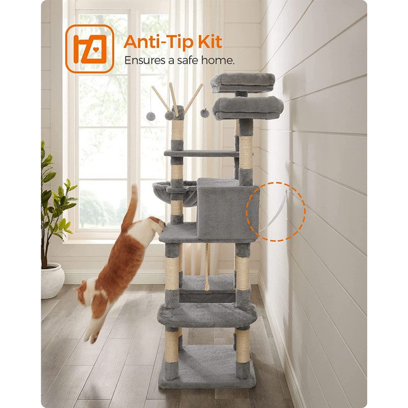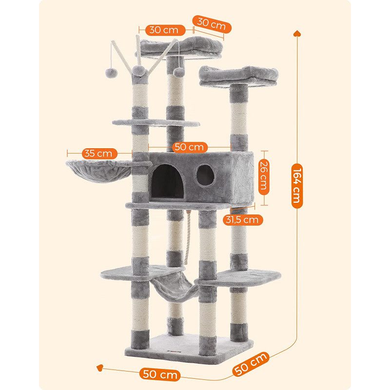XXL klösträd på 164 cm i ljusgrått, designat med extra breda plattformar så att även större katter kan ligga bekvämt på varje nivå