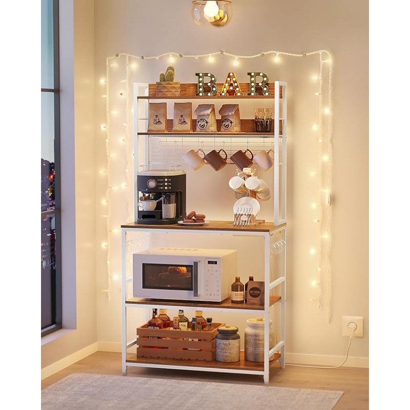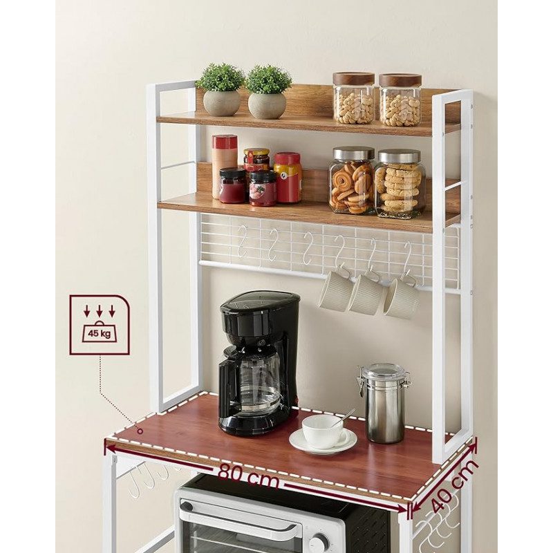 Gott om förvaringsutrymme med 5 hyllplan för mikrovågsugn, kaffemaskin, airfryer och andra köksmaskiner