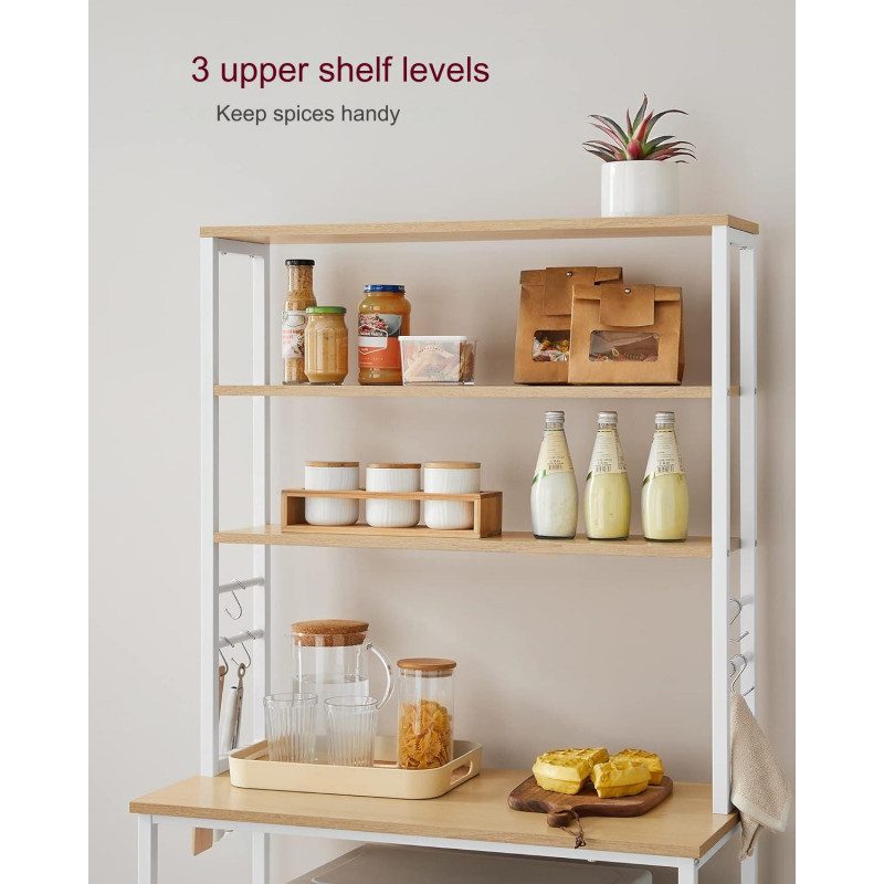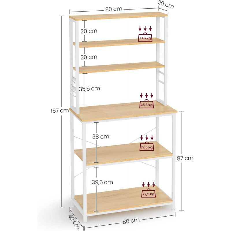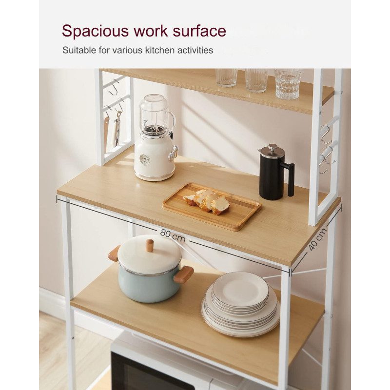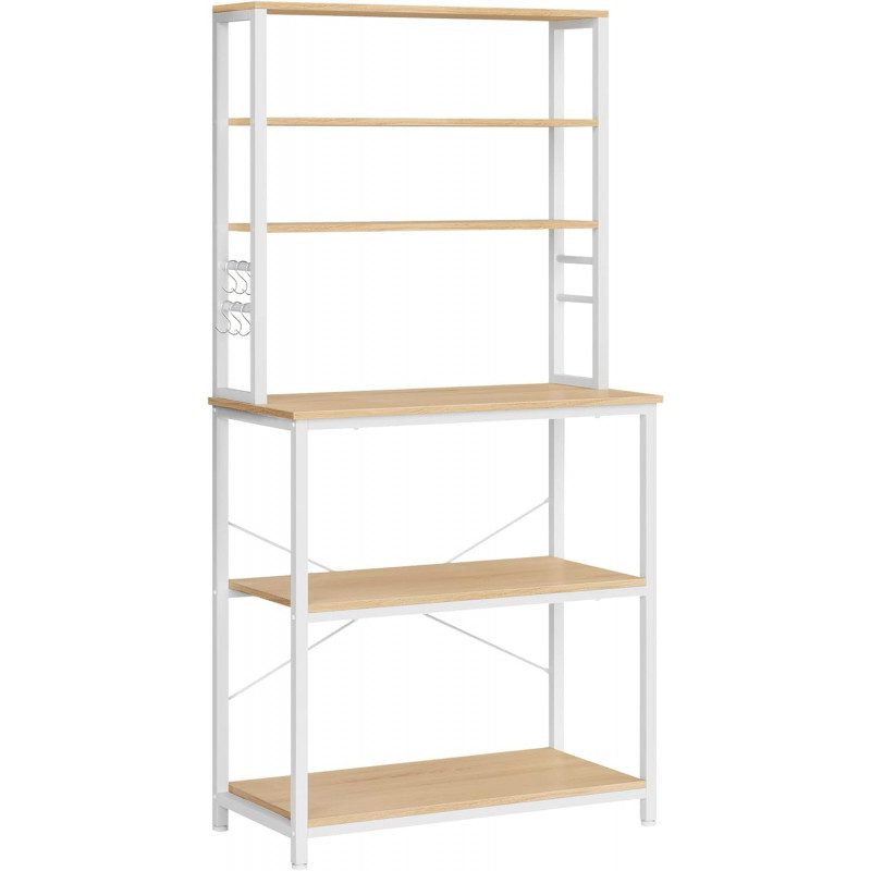 Rymlig kökshylla i ek/vit design med 6 hyllor och 6 krokar som hjälper dig skapa ordning i köket