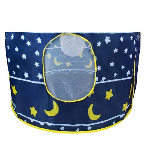Tältet är tillverkat av högkvalitativt, slitstarkt syntetmaterial som står emot skador och daglig lek. Den stabila ramen gör konstruktionen säker, medan avsaknaden av vassa kanter skyddar barnet från skador. Tältet är också utrustat med golv för extra komfort.