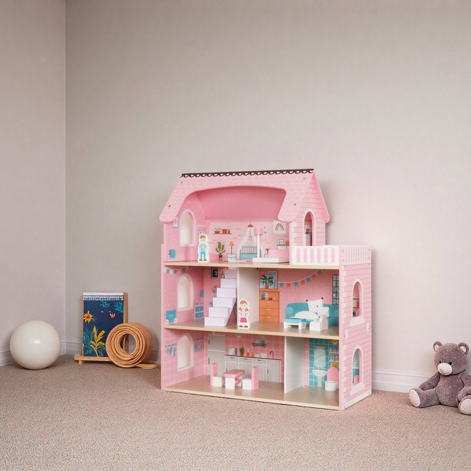 ✔ Stort trädockhus med 3 våningar, 5 rum och balkong