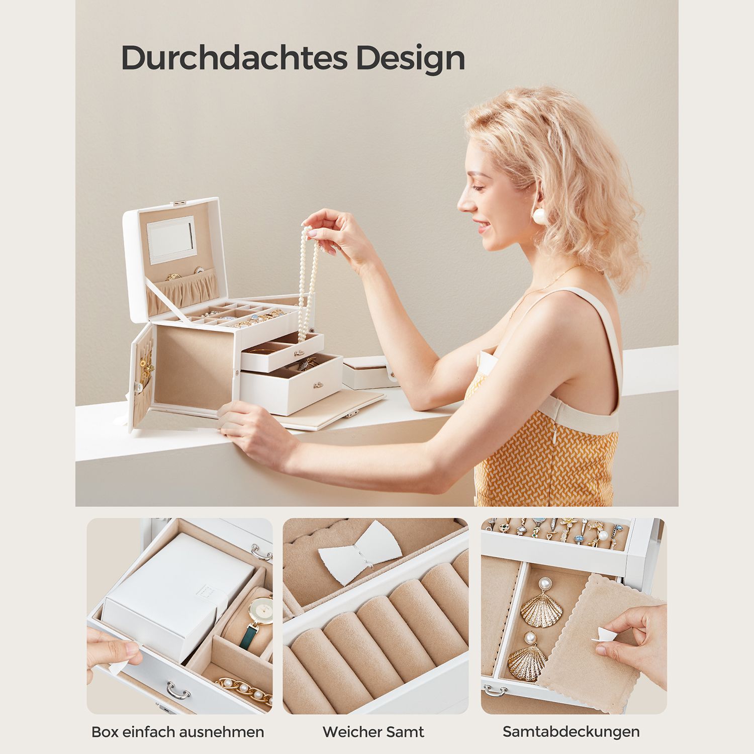 Smart förvaring med 2 lådor, 2 sidodörrar för halsband och flera fack för ringar och små tillbehör så att du snabbt hittar det du vill bära