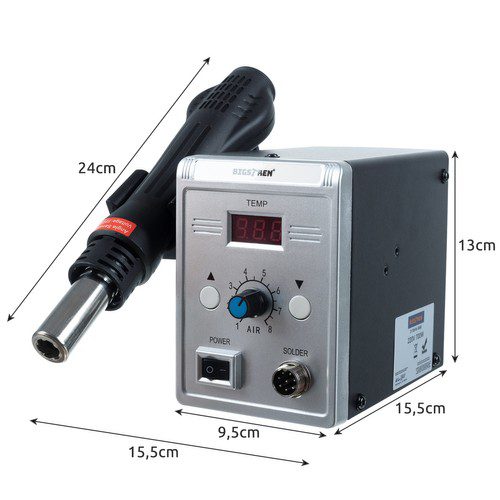 ✔ TEMPERATUR- OCH LUFTFLÖDESJUSTERING – varmluftslödstationen har justerbar temperatur och luftflöde, vilket gör det möjligt att anpassa värmeeffekten efter material och arbetsmoment.