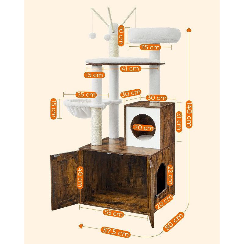 2-i-1 klösträd med dold kattlåda som döljer smuts, minskar lukt och håller nyfikna hundar borta