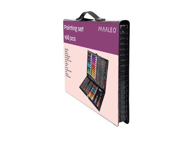 ✔ Med hela 168 delar – från kritor och markörer till pasteller och akvarellfärger – får du allt du behöver för att skapa egna konstverk.