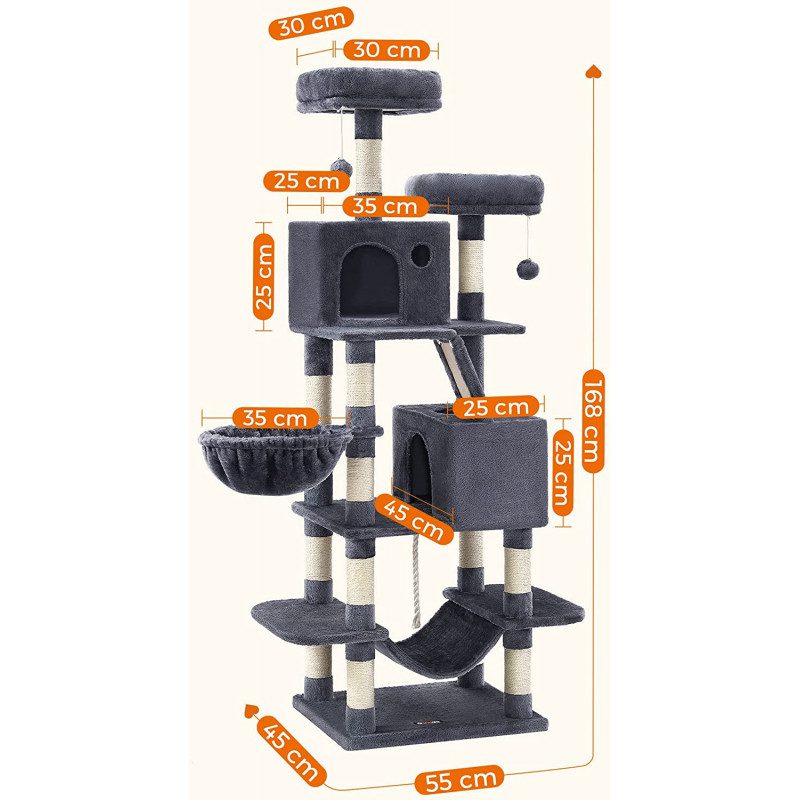 Generös höjd på 168 cm som passar perfekt för katter som älskar att klättra och observera omgivningen