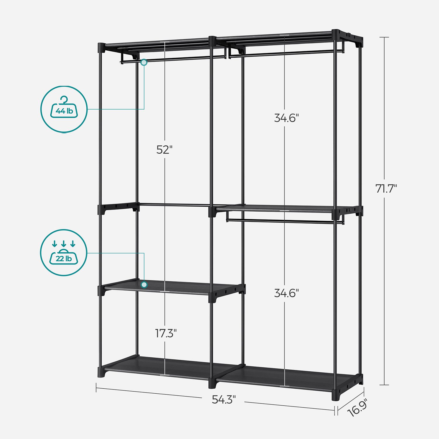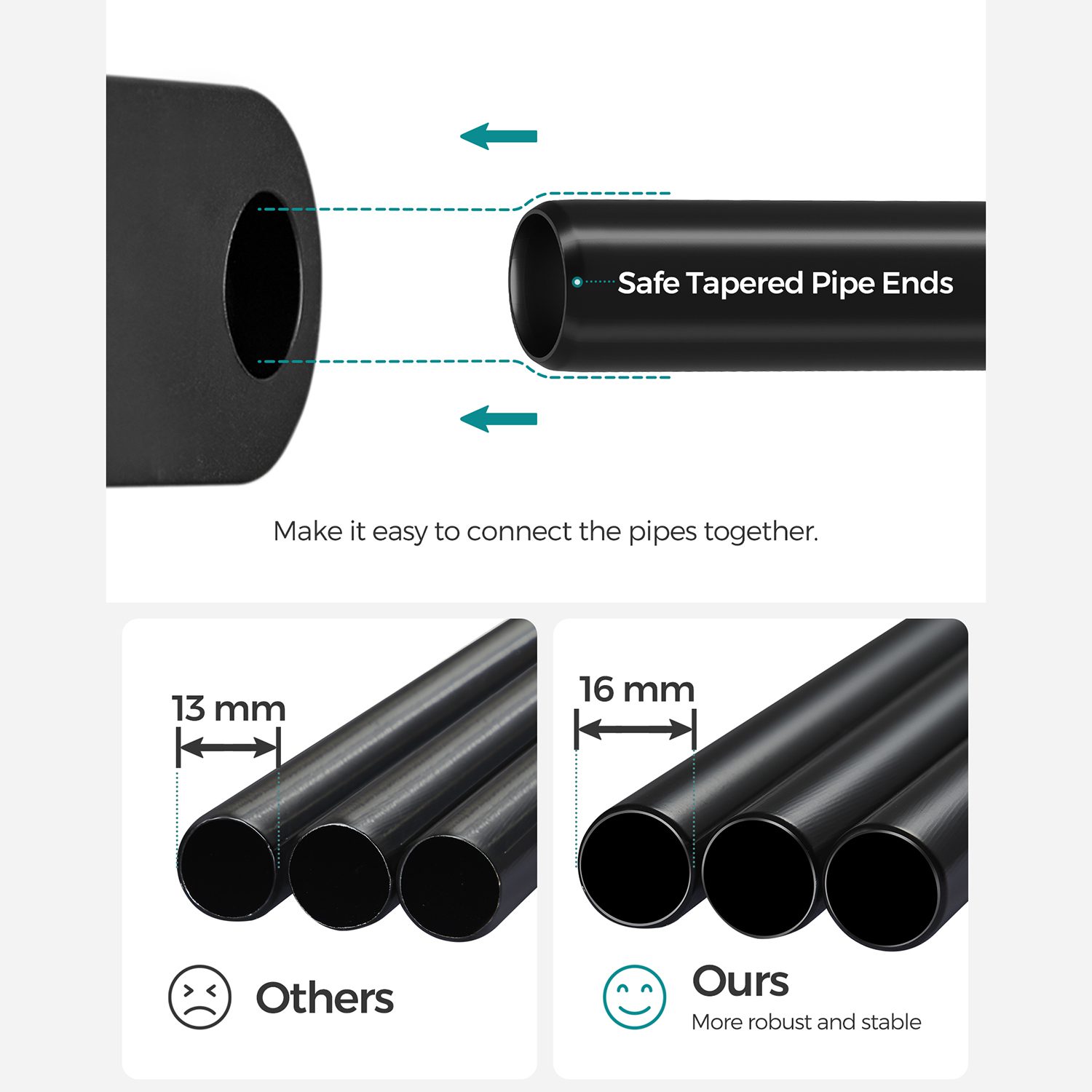 Förstärkt garderobsram i metallrör (16 mm) som ger hög stabilitet och böjs inte lätt
