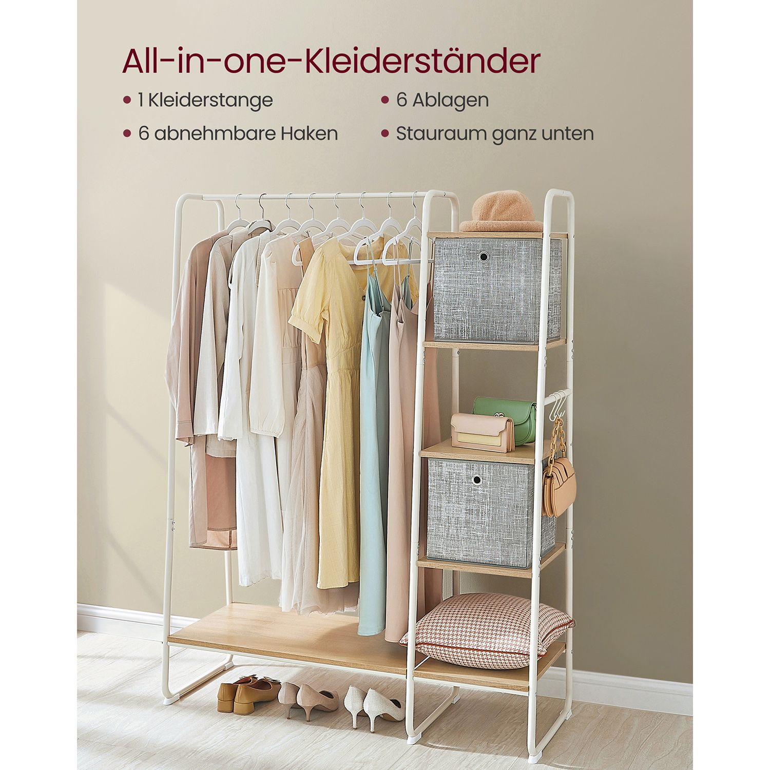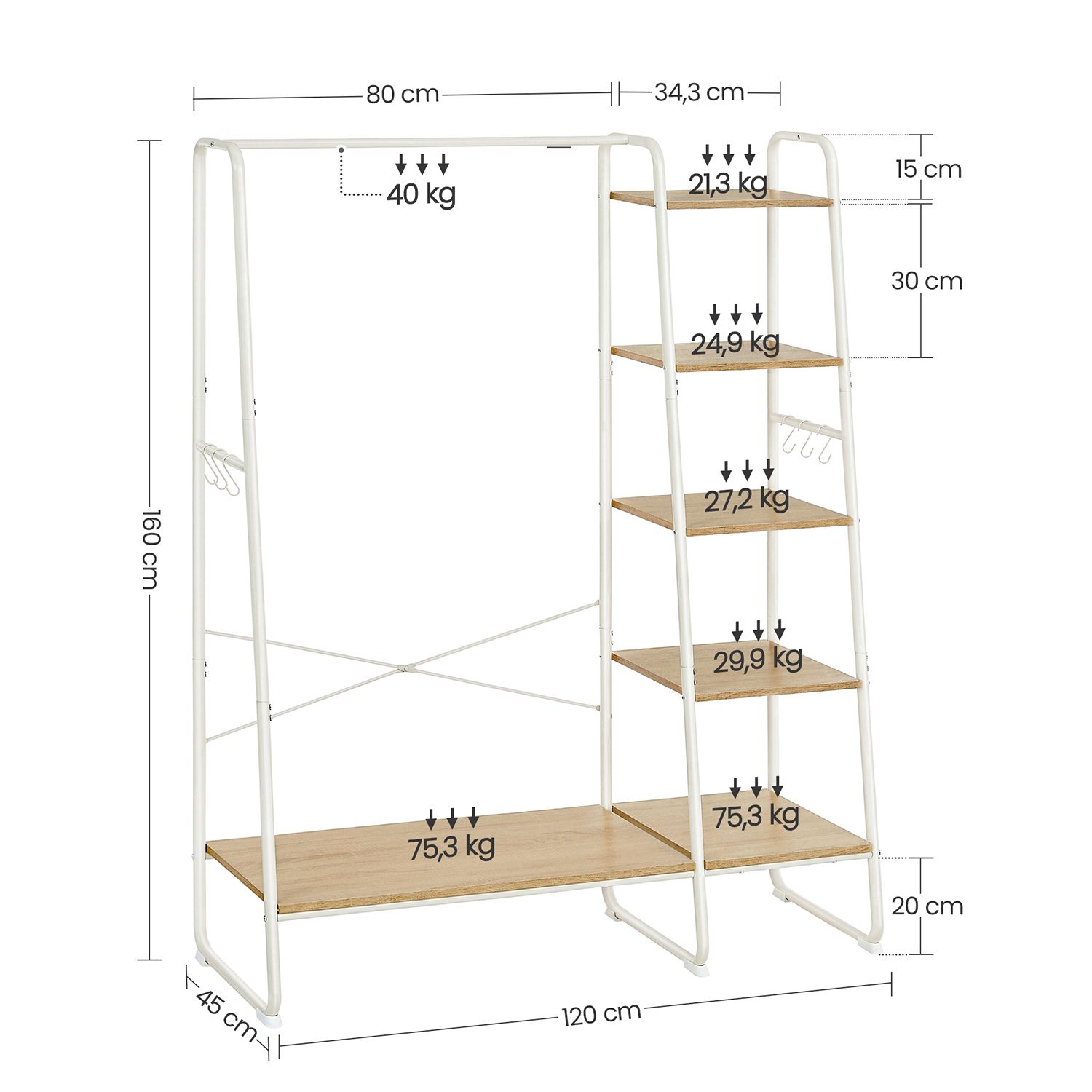 Öppen garderob/klädställning i ek-vit med klädstång, hyllor, skoställ och 6 avtagbara krokar