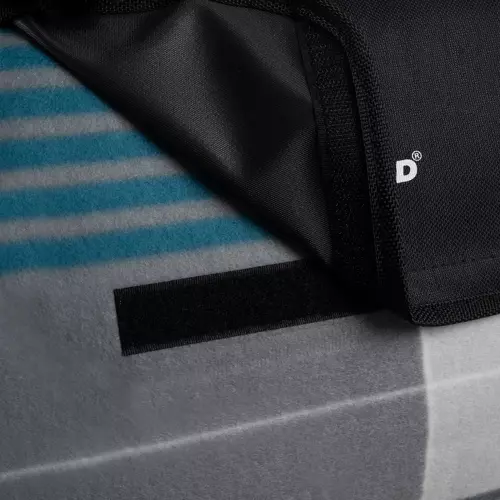 ✔ Kardborreband håller filten på plats när den är ihoprullad