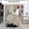 Stolen har praktiska funktioner som sido- och framfickor, mugghållare och hjul med bromsar för enkel förflyttning. Den stora sittytan med tjock stoppning och ergonomiskt ryggstöd ger långvarig komfort, perfekt för avslappning eller som en hjälpande hand för att resa sig. Fjärrkontrollen med USB-gränssnitt gör den enkel att använda.