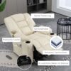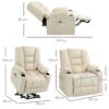 Denna lyxiga recliner är klädd i slitstarkt gräddvitt konstläder och har en justerbar lutningsfunktion upp till 150°. Med fyra massagezoner och justerbara intensiteter erbjuder den optimal avkoppling. Utrustad med praktiska funktioner som fjärrkontroll med USB-gränssnitt, sido- och framfickor samt hjul med bromsar för enkel förflyttning.