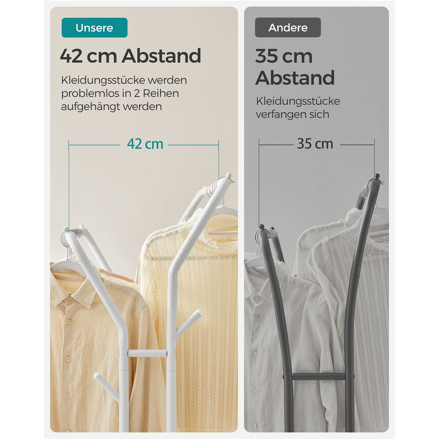 Snabbtorkande och lättåtkomlig tack vare 42 cm mellan stängerna som ger bra luftcirkulation, mindre trassel och smidig åtkomst