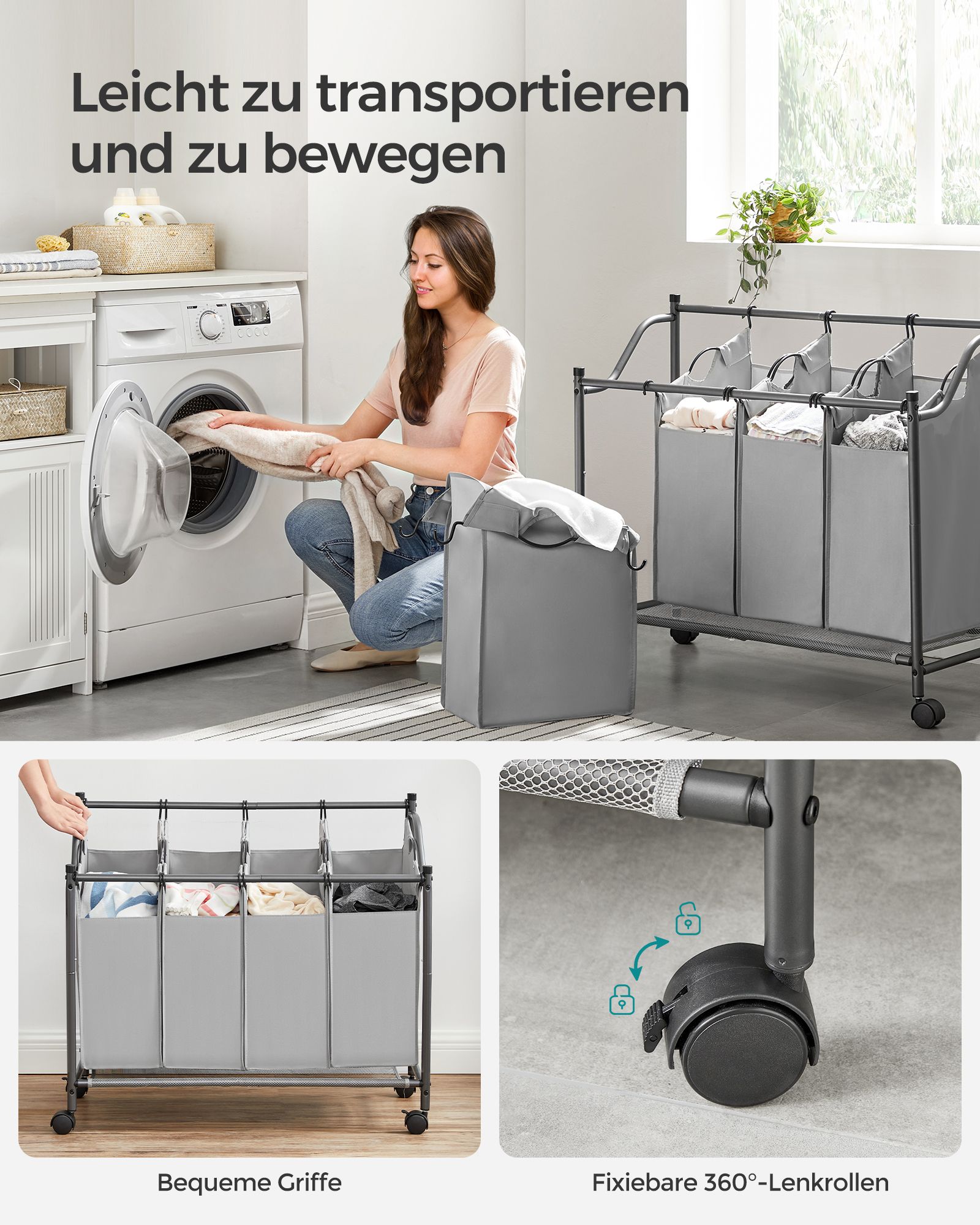 Tygpåsarna kan tas loss individuellt och har handtag så du slipper bära hela tvättkorgen till tvättmaskinen
