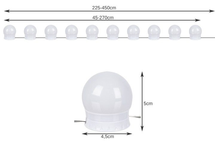 ✔ Kabelns totala längd: 4,5 m (inkl. kabel med lampor 2,7 m)