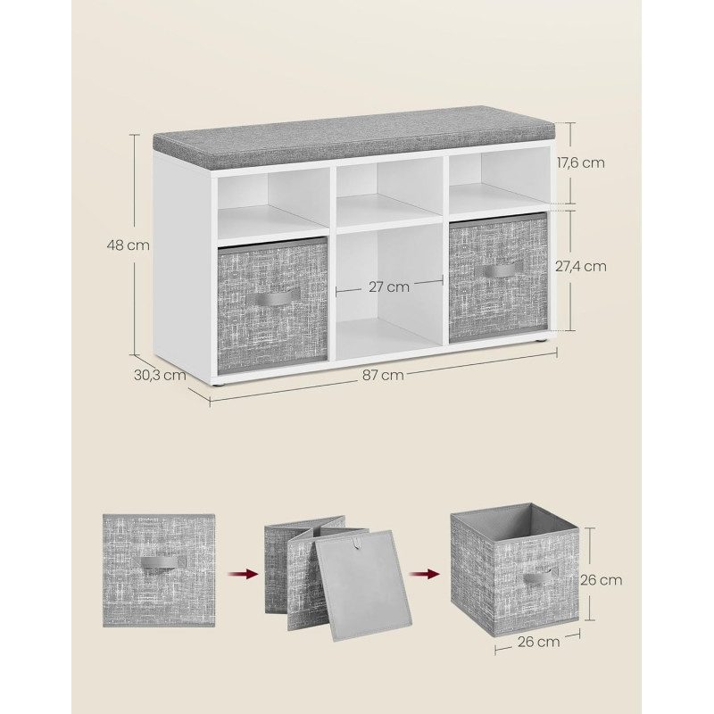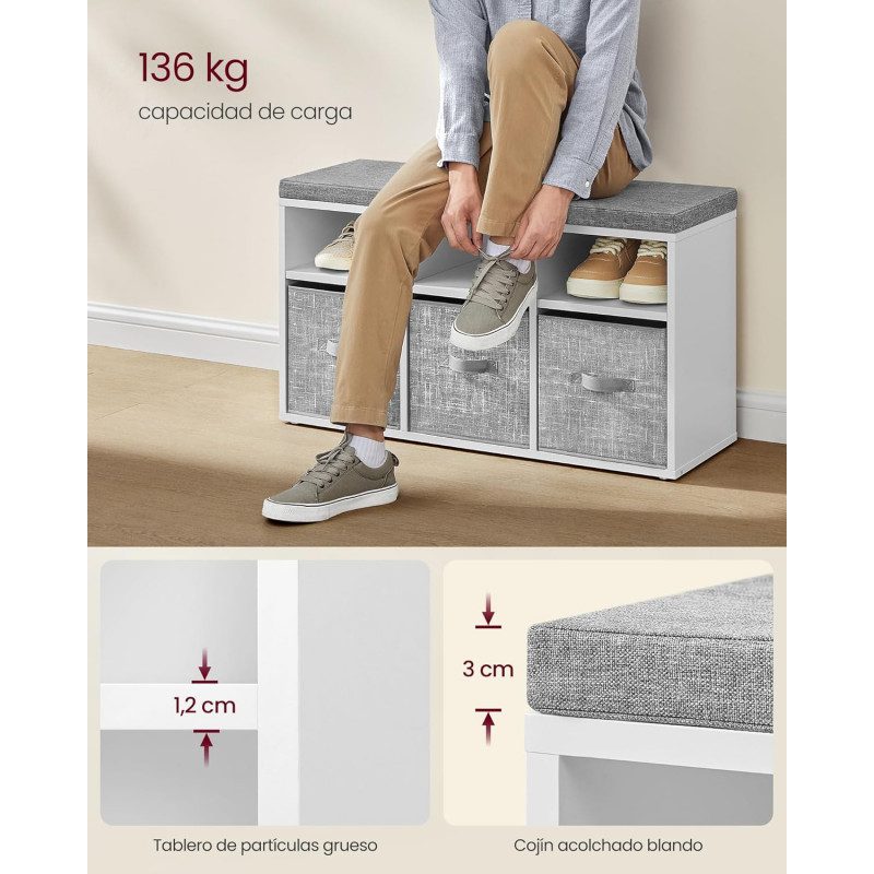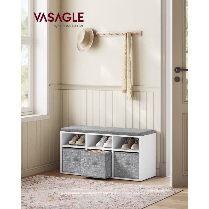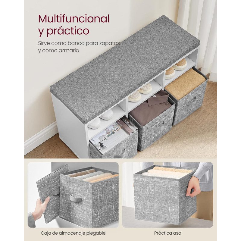 Multifunktionell skobänk med smart förvaring som kombinerar sittplats, skofack och 3 förvaringslådor