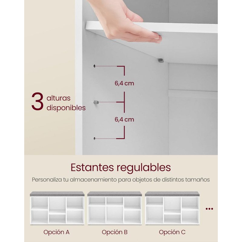 Justerbara hyllplan i 3 nivåer gör att du kan anpassa förvaringen efter skor och andra föremål