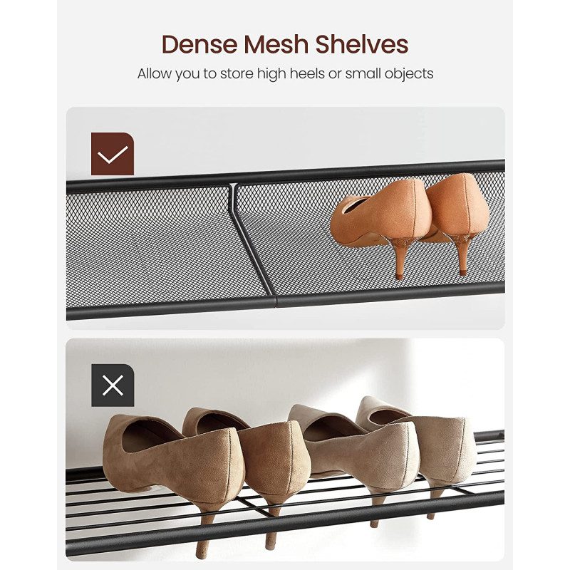 Justerbara näthyllor med upphöjd kant: Anpassa efter behov – placera skorna plant eller vinklat tack vare justerbara mesh-hyllor, och den upphöjda kanten hjälper till att hålla dem på plats