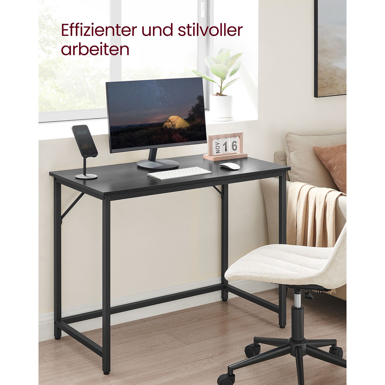 Stabil konstruktion i träspånskiva och stål för daglig användning.