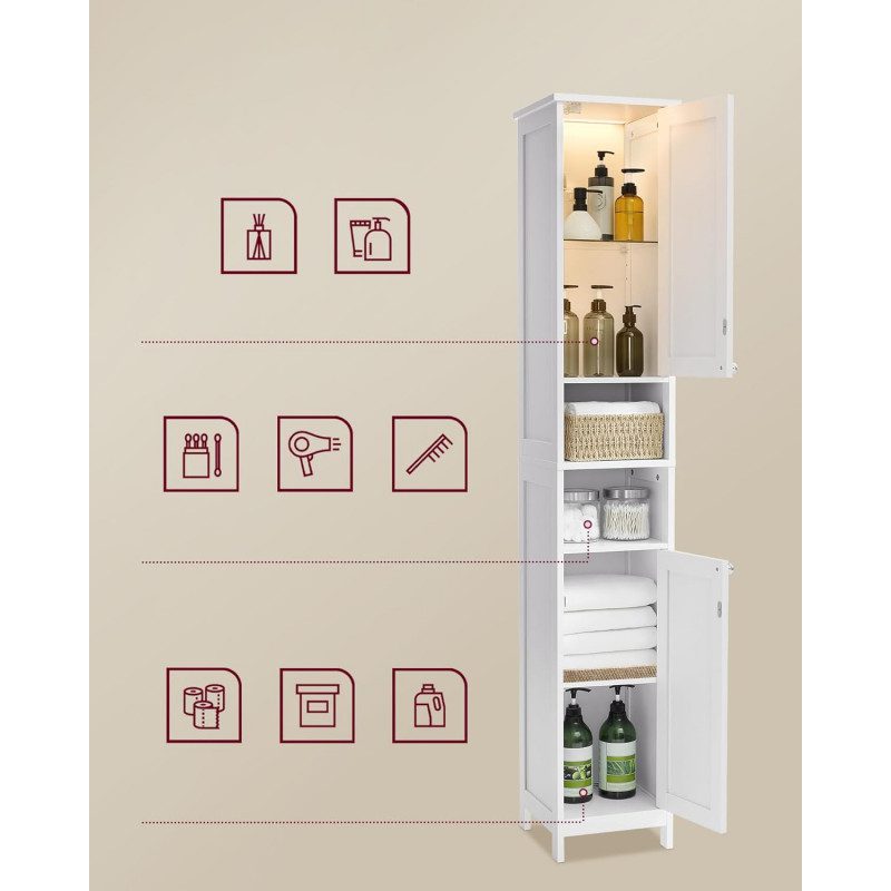 Smalt och högt badrumsskåp som ger mycket förvaring på liten yta – perfekt för små badrum och trånga hörn