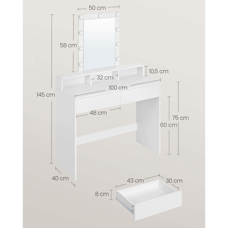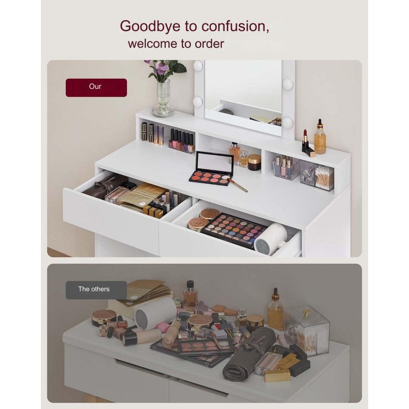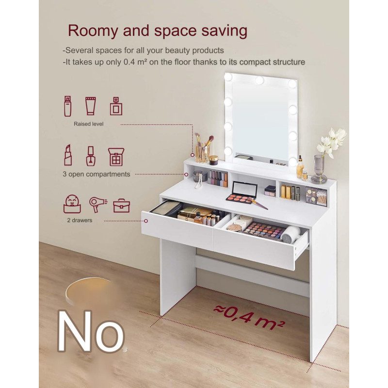 Sminkbord med spegel, LED-belysning med justerbar ljusstyrka, 2 lådor och 3 fack – perfekt för en komplett smink- och stylingsession