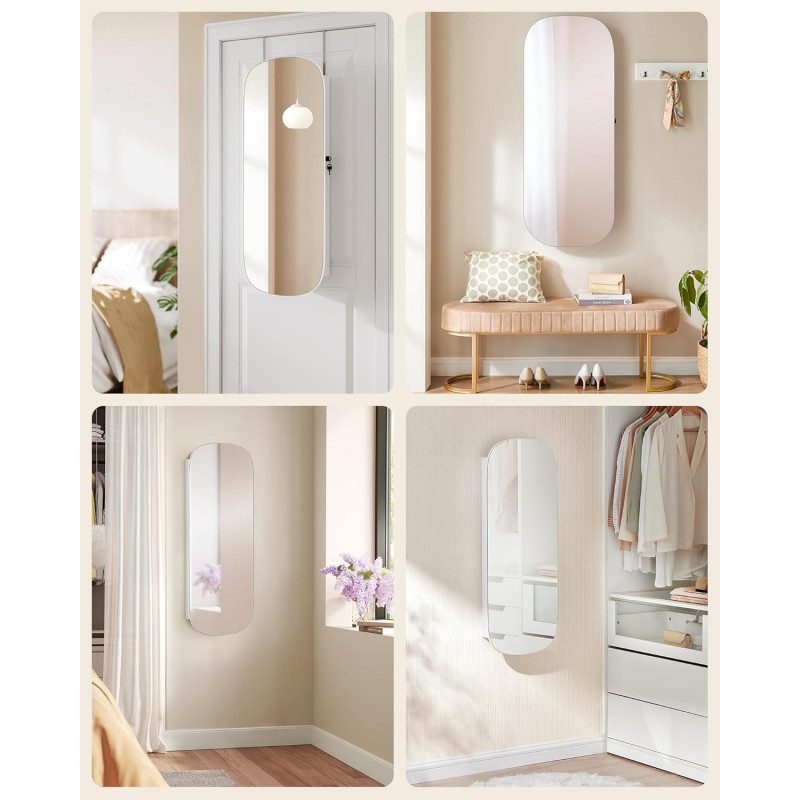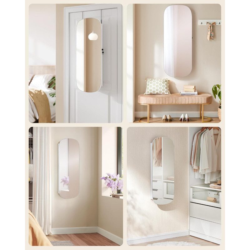 Väggmonterat smyckesskåp som kombinerar dekorativ spegel med smart dold förvaring