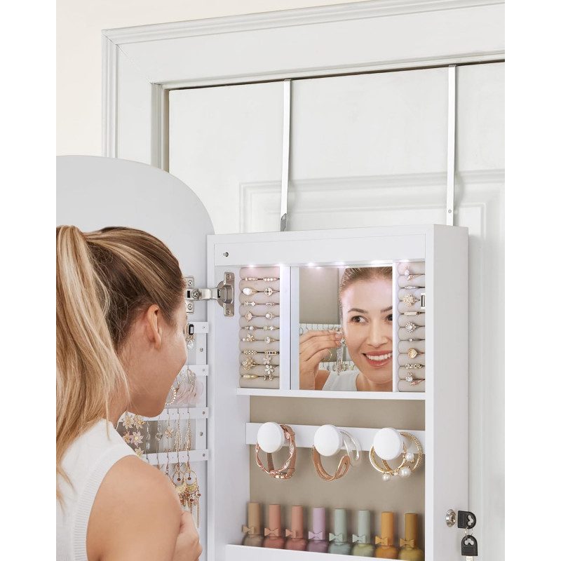 Inbyggd invändig spegel och LED-belysning som gör det enkelt att välja smycken eller sminka sig även i svagt ljus
